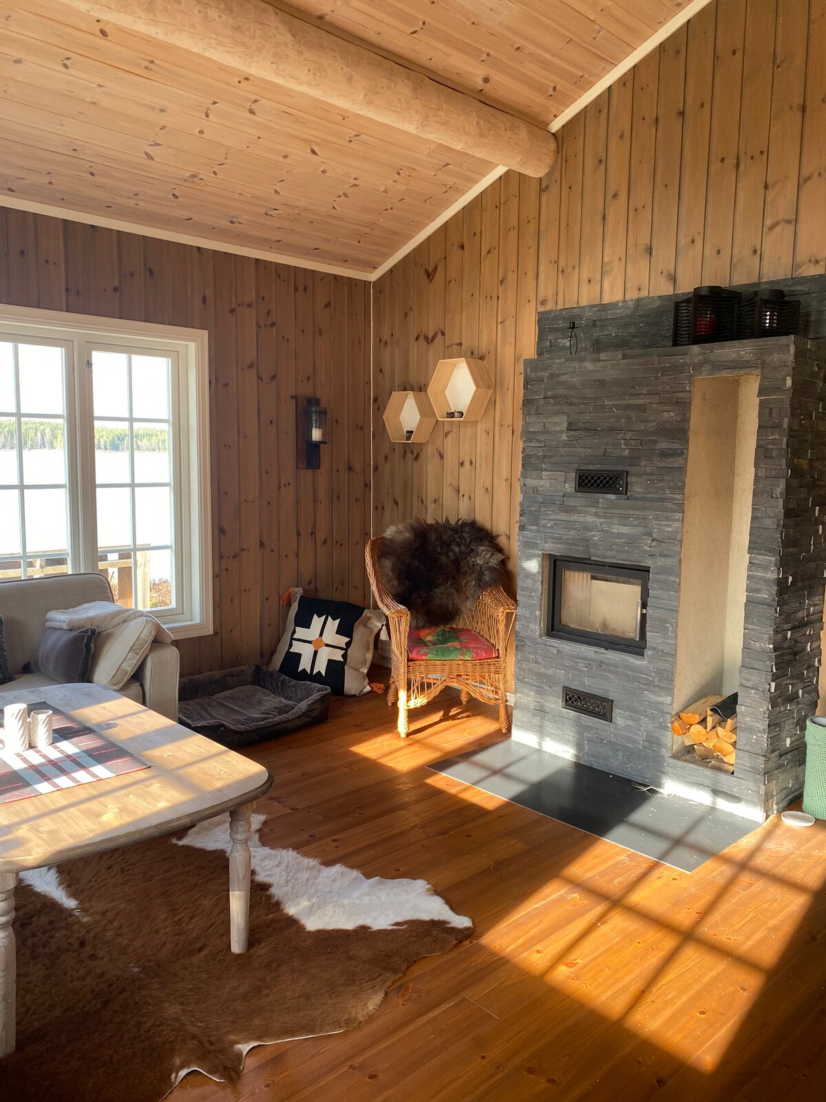 Wifi percuma, tab mandi air panas, 3 meter dari air, tenang dan bagus, berhampiran dengan alam semula jadi, mesin basuh pinggan mangkuk, mesin basuh, teres, tempat letak kereta persendirian, pancuran mandi dan tandas, pendiangan, pemanas lantai dan semuanya baru diubahsuai pada tahun 2020. Cadar dan tuala perlu dibawa sendiri. Pembersihan perlu dilakukan sebelum anda mendaftar keluar dan perlu dilakukan dengan teliti, contohnya, vakum, keringkan lantai, bersihkan bilik mandi dan dapur. Jadi anda meninggalkan rumah dalam keadaan seperti semasa anda tiba. Bot mendayung disertakan ke kabin. Anda perlu membersihkan rumah sebelum anda keluar.