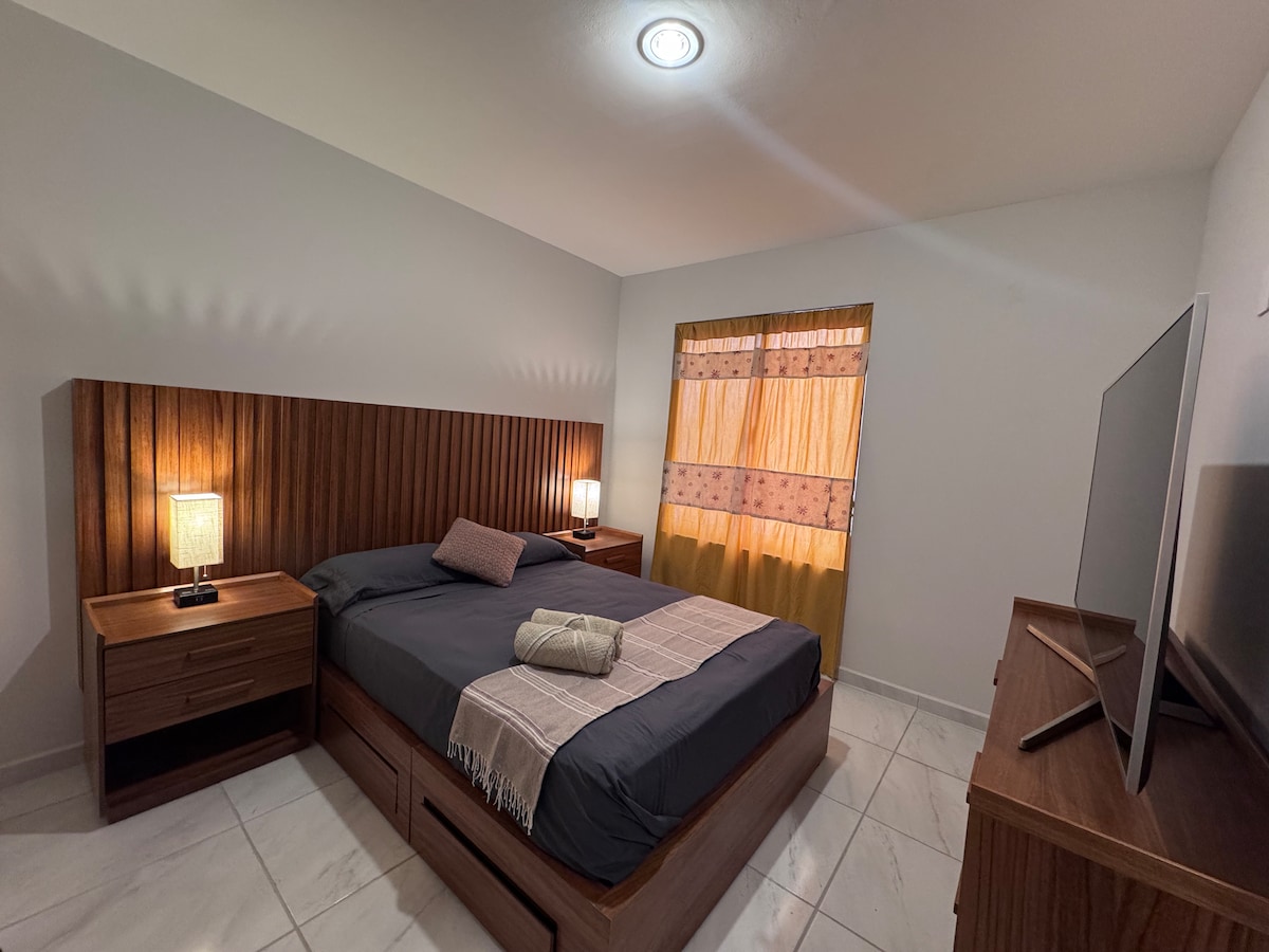 Fully equipped studio apartment for a comfortable stay, featuring a king-size bed, kitchenette, and private bathroom. It also includes access to a shared terrace. Located in a quiet residential area with an excellent location. Close to places such as: Midtown Shopping Center, Sao Paulo Mall, Country 2000 Hospital, Mexico American Hospital, Light Rail Line 3 Station, casino, pharmacies, churches, the Historic Center, bars, and restaurants.