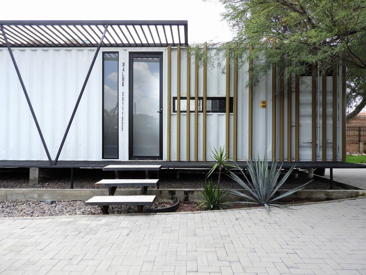 Jalani pengalaman untuk tinggal di rumah yang dibina daripada Kontena. Apartmen selesa dengan segala-gala yang anda perlukan, katil bujang, bilik air persendirian, dapur kecil yang dilengkapi dengan semua keperluan penting, mesin basuh dan teres persendirian. 10 minit berjalan kaki dari bandar lama Queretaro. Berdekatan anda akan menemui pelbagai kedai runcit, Mercado, restoran, sekolah.