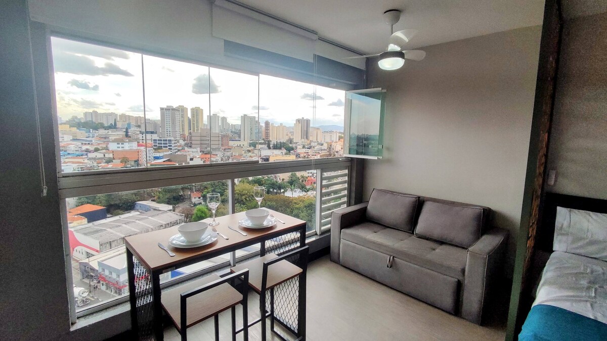 Selamat datang ke sudut kecil kami yang direka untuk menawarkan keselesaan, kepraktisan dan lokasi istimewa. Studio kami baru dan sesuai untuk mereka yang bekerja di bandar, berehat selepas perjalanan, berada dekat dengan orang yang mereka sayangi atau hanya menikmati Guarulhos dengan aman. 📍Lokasi strategis: ✈Hanya 7 km dari Lapangan Terbang Antarabangsa Guarulhos 🚑1 km dari Hospital e Maternidade São Luiz Dikelilingi oleh bar dan restoran dengan makanan yang lazat, farmasi dan pasar.