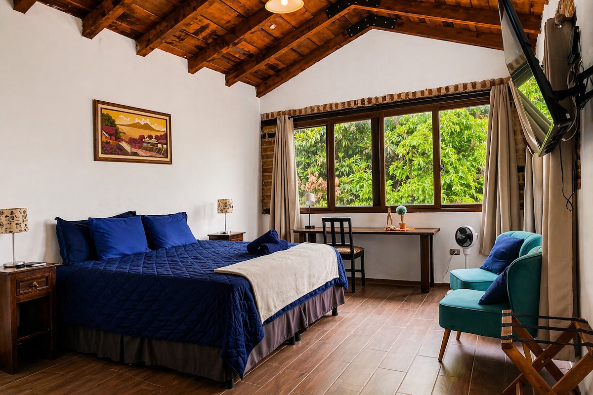 Airbnb kami hanya 15 minit berjalan kaki dari Plaza Mayor of Antigua Guatemala. Dengan ketersediaan untuk penginapan jangka pendek dan panjang, bilik yang lengkap dan dengan bilik mandi persendirian. Anda akan mendapat pemandangan istimewa ke arah 3 gunung berapi (Satu membuat letusan) dan anda akan menikmati matahari terbenam kami yang tiada tandingan. ¡Caminaras towards our Airbnb! in a nature reserve, surrounded by a Benefit of Café San Lázaro, Protgido by the National Council for the Protection of Antigua Guatemala.
