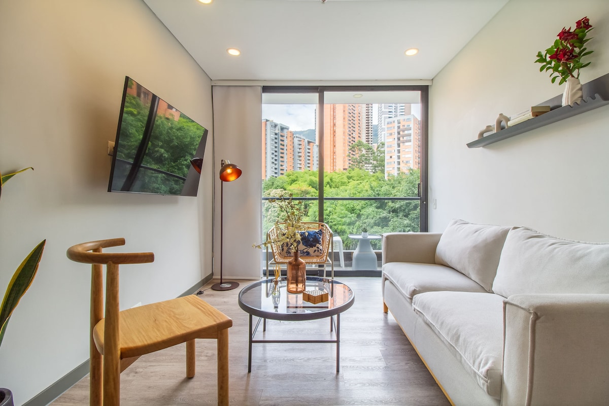 Flat super di El Poblado dengan pendingin hawa, Wifi