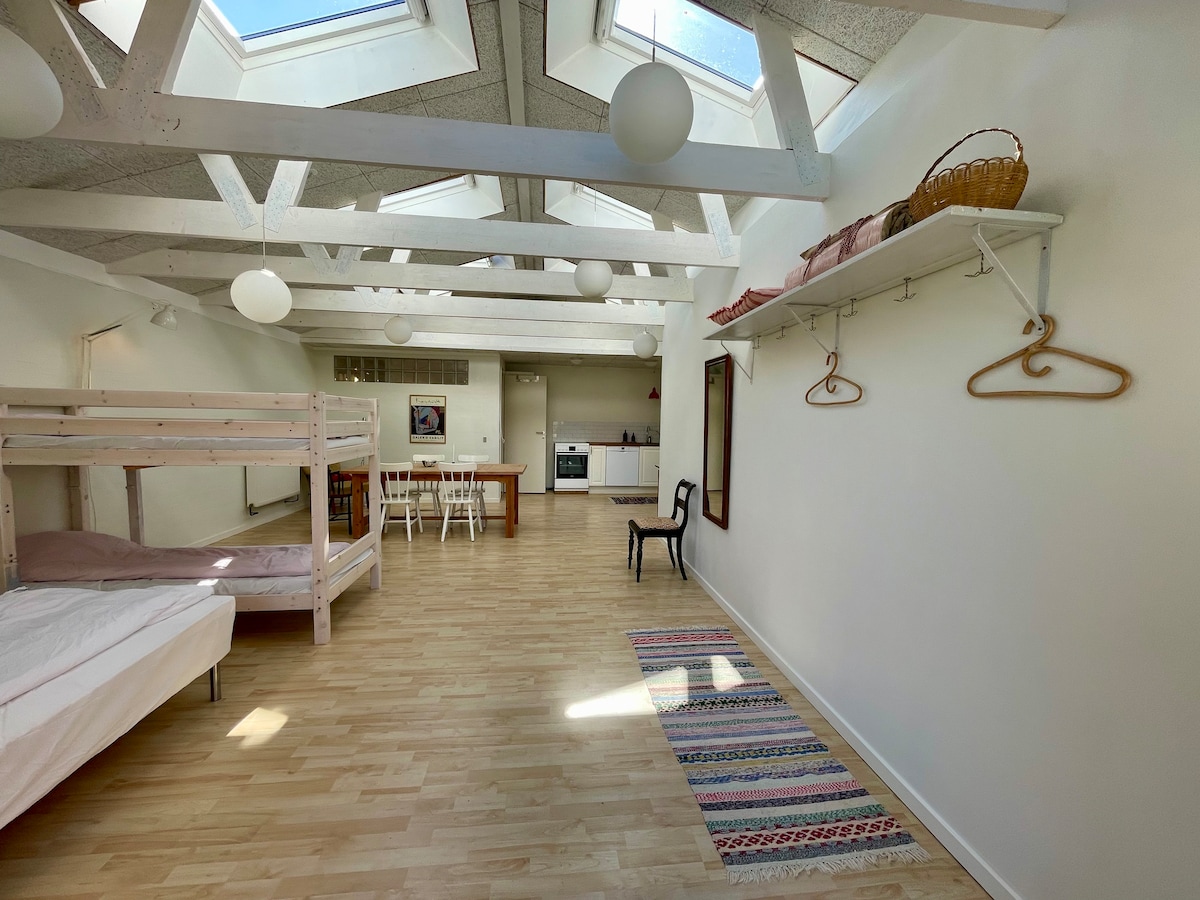 Selamat datang ke rumah kami yang indah dari tahun 1800 yang terletak di kawasan yang indah, di mana anda boleh menikmati kediaman anda sendiri dengan pintu masuk sendiri. Rumah ini terletak di tengah-tengah antara Rønne dan Nexø, dan hanya 2 km dari pantai putih yang paling indah di Boderne. Terdapat peluang untuk pelbagai lawatan di kawasan sekitar. Lawati Naturbornholm, pergi ke Arnager di mana anda berpeluang untuk mencari fosil dan gigi jerung. Terdapat 2 bilik tidur, sebuah loteng dengan katil, bilik mandi dan ruang tamu/dapur yang selesa.