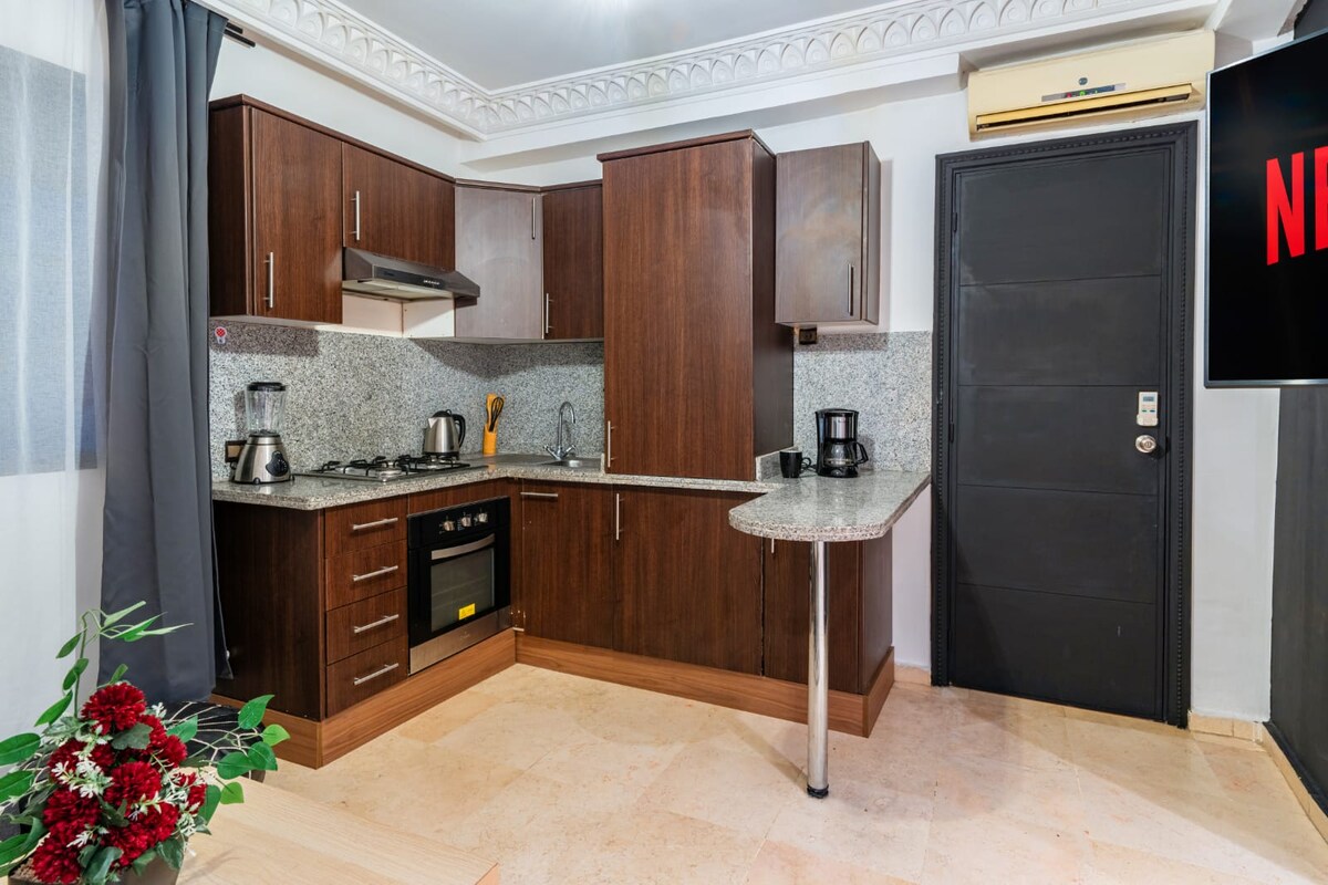 Apartmen kami terletak dengan mudah di pusat bandar Marrakech. Stesen kereta api, banyak kafe, restoran, kedai runcit dan pasar raya semuanya dalam jarak berjalan kaki. Lapangan terbang hanya 12 minit memandu jauhnya, menjadikannya ideal untuk pengembara. • Penginapan ini menawarkan Wi-Fi berkelajuan tinggi, Netflix & IPTV, penyaman udara, kolam renang dalaman, pusat kecergasan, tempat letak kereta persendirian, tertutup, dan keselamatan & pengawasan 24/7.