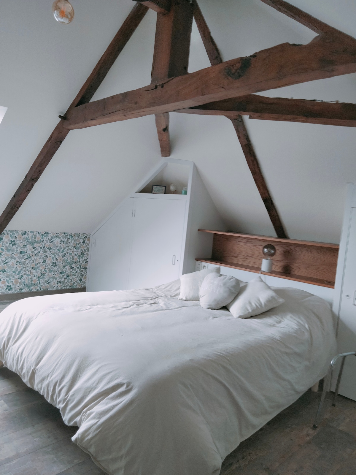 Ini ialah bangunan luar lama di mana cider dibuat, diubah suai sepenuhnya pada 36m2 di atas tanah dengan tingkat mezanin terapung. Penginapan ini bebas dan menawarkan semua keselesaan moden rumah semasa dengan semua peralatan yang berguna. Taman persendirian seluas lebih daripada 5000m2 boleh diakses oleh pengembara yang juga boleh pergi melihat kambing dan biri-biri di dalam kawasan mereka.