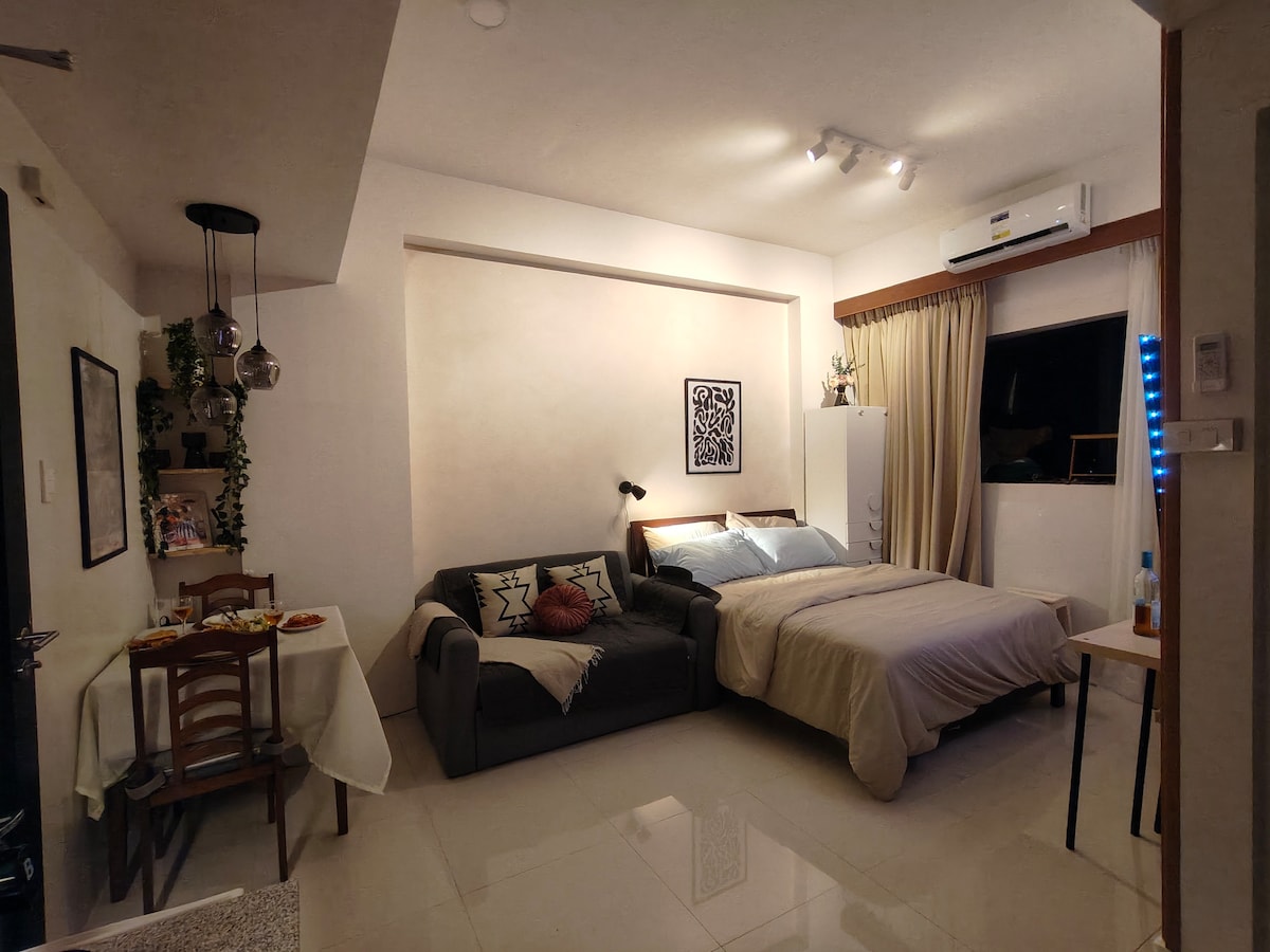 Terokai Bandar Iloilo dan menginap di studio kondominium yang terletak di tengah-tengah ini dengan PENGGUNAAN kemudahan kolam renang SECARA PERCUMA! Tempat ini JARAK BERJALAN ke tempat-tempat utama di bandar! Nikmati percutian anda dengan CIRI-CIRI UTAMA saya: PROJEKTOR UNTUK PENGALAMAN SINEMASI DI RUMAH ANDA. Dilengkapi dengan stand & alat kawalan jauh. Nikmati dengan WiFi berkelajuan tinggi kami! PENGGUNAAN PERCUMA akaun saya di Amazon Prime/NETFLIX ♡ DAFTAR MASUK DIRI tersedia untuk proses yang lancar. Daftar masuk pada BILA-BILA masa sepanjang hari! Kod akan dihantar kepada tetamu untuk akses selepas membuat tempahan.