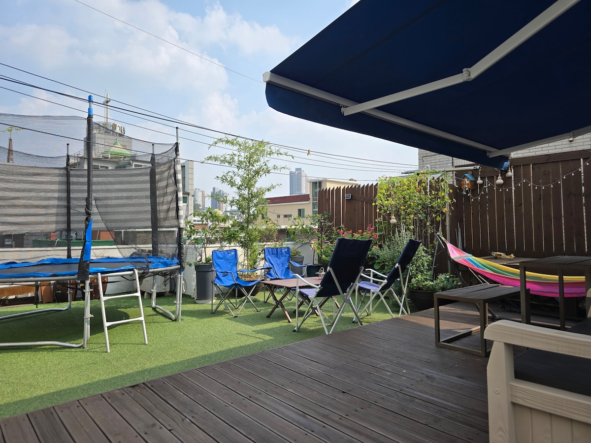 Penarafan purata 4.97 daripada 5, 98 ulasan고척 루프탑 하우스#보타니컬 루프탑#캠핑감성#고척스카이돔#3룸