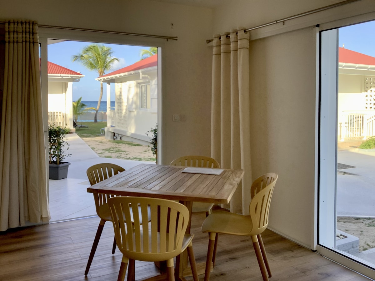 Penginapan yang tenang dan selesa, sesuai untuk meremajakan semasa percutian anda, terletak di lokasi yang ideal untuk menikmati pulau ini sepenuhnya, hanya beberapa minit berjalan kaki dari Saint Jean Bay, kedai, bar dan restoran. Terdiri daripada ruang tamu yang selesa dan ruang makan/dapur. Bilik tidur pertama terletak di tingkat bawah, dan bilik tidur kedua berada di tingkat satu, kedua-duanya berhawa dingin, masing-masing dengan bilik mandi persendirian sendiri. Anda boleh menikmati teres dan patio persendirian.