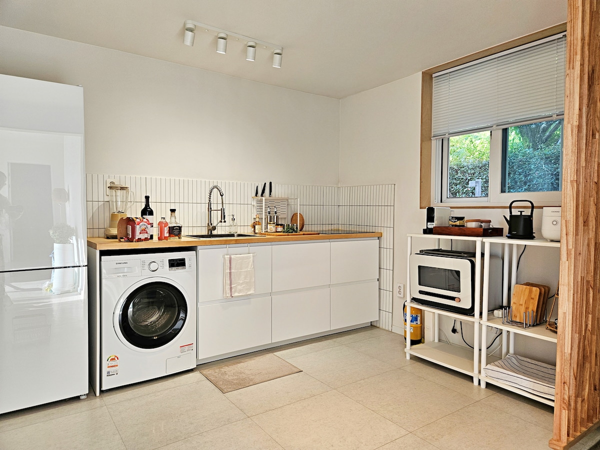 Terima kasih kepada ramai orang yang telah menggunakan penginapan kami sepanjang masa ini. Memandangkan terdapat begitu ramai orang yang menyukainya dan mengunjunginya semula, kami terpaksa membuat pembinaan semula pada bulan November. Akhir sekali, dalam penampilan yang cantik Saya telah bertemu anda semua. Jadi anda tidak akan kecewa apabila anda datang Dengan konsep hotel mewah, kami akan berusaha sedaya upaya Kami telah membuat persediaan dengan sepenuh hati. Perabot termasuk sofa, katil (king besar), meja dapur, dll. Dengan produk Casamia Kami menyediakan keselesaan semasa menggunakan penginapan ini Khususnya diperbuat daripada dinding batu Jeju Tab mandi air panas separa terbuka yang sensasi Terdapat kanak-kanak yang berenang dengan air panas Orang dewasa dengan rendaman kaki yang hangat Melegakan keletihan akibat perjalanan Kenangan indah dengan mereka yang datang bersama anda Anda boleh berjaya. * Kolam renang luar yang besar hanya tersedia pada musim panas Anda boleh menggunakannya. (Tiada kemudahan air panas) Untuk orang dewasa menggunakan kolam renang psyche, Saiz besar yang boleh anda gunakan (Kedalaman 1m20 × panjang 6m x 4m atau lebih) Bulan Julai dan Ogos termasuk dalam harga penginapan anda Di luar bulan Julai dan Ogos, Yuran penggunaan kolam renang dikenakan * Anjing dibenarkan (10k atau kurang) Yuran pembersihan (30,000 KRW) dikenakan apabila ditemani Hingga 2 anjing dibenarkan. Kolam renang tidak dibenarkan untuk anjing.
