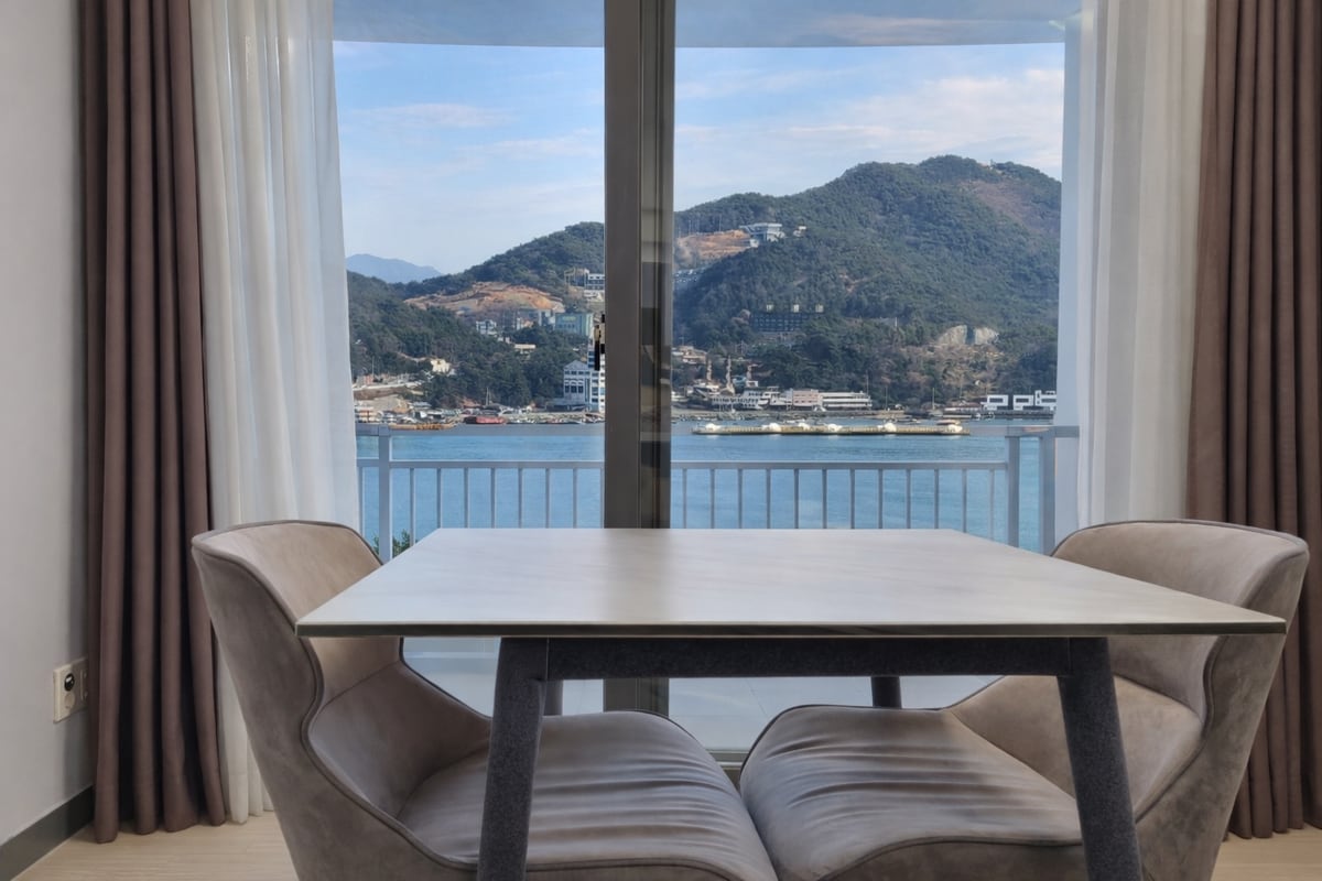 (Harga istimewa)#Teres Pemandangan Laut/Pelabuhan Marina/10 minit dari Stesen Yeocheon/1 minit berjalan kaki ke pasar raya/Bilik untuk 3 orang (2 katil)/Moden dan kemas/Parkir percuma