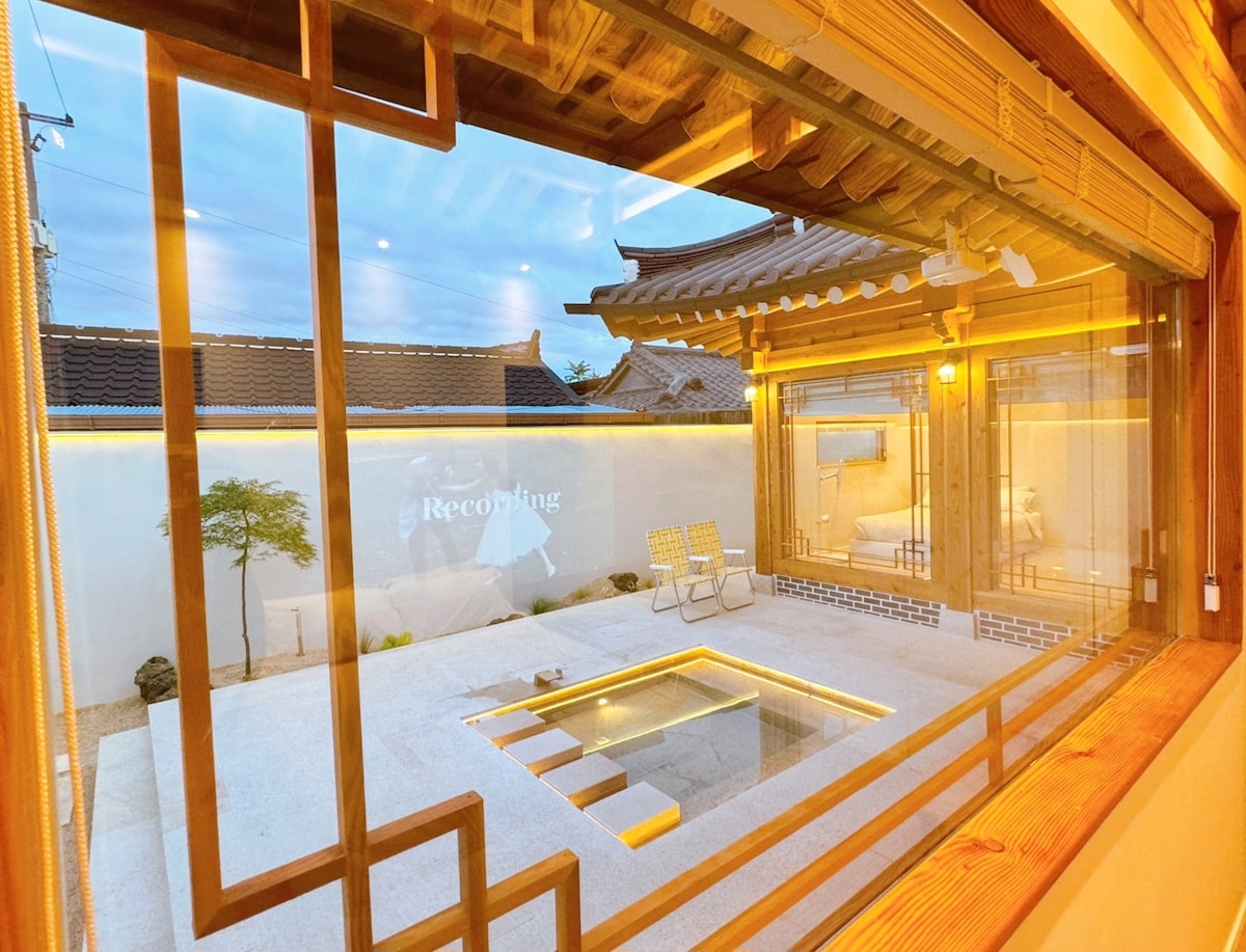 Ini adalah vila kolam renang rumah persendirian Hanok tradisional yang bersempadan dengan jalan utama Gyeongju Hwangnidan-gil.. Terdapat kolam air terjun dan jakuzi, dan dalam masa 5 minit berjalan kaki, terdapat Taman Daereungwon, Cheomseongdae, Jambatan Woljeong, Padang Rumput Donggung, dll. Anda boleh menikmati tarikan pelancong milenium Shilla. [Hanok Prince] Penginapan kami adalah satu-satunya penginapan hanok tradisional di Gyeongju Hwangnidan-gil dengan jakuzi besar (spa) dan kolam air terjun di dalam rumah. Saya harap perjalanan anda ke Gyeongju menyeronokkan sambil menikmati spa dan berenang sepanjang musim sekaligus.♡♡♡