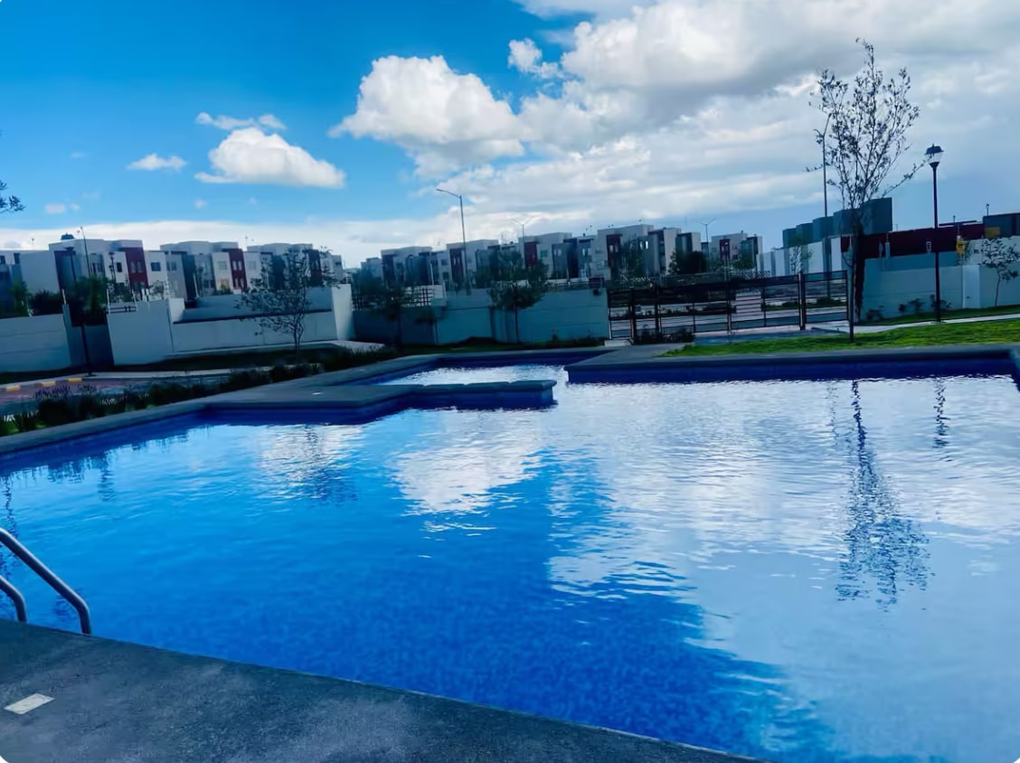 Bersantai di apartmen 2 bilik tidur mewah kami di Tizayuca, yang terletak dalam komuniti berpagar yang selamat berhampiran Lapangan Terbang Felipe Ángeles yang baru. Dengan perabot terbaik, kolam renang yang tidak beriklim berkilauan, BBQ Grill dan taman-taman yang luas, ia adalah syurga yang damai. Selain itu, dengan tapak ekopelancongan berhampiran, pengembaraan berada di depan pintu anda. Nikmati keselamatan dan keindahan estet persendirian ini, menyediakan percutian yang tenang berhampiran dengan kemeriahan CDMX. ¡Selamat datang ke rumah anda jauh dari rumah, untuk percutian yang bagus dan tenang!