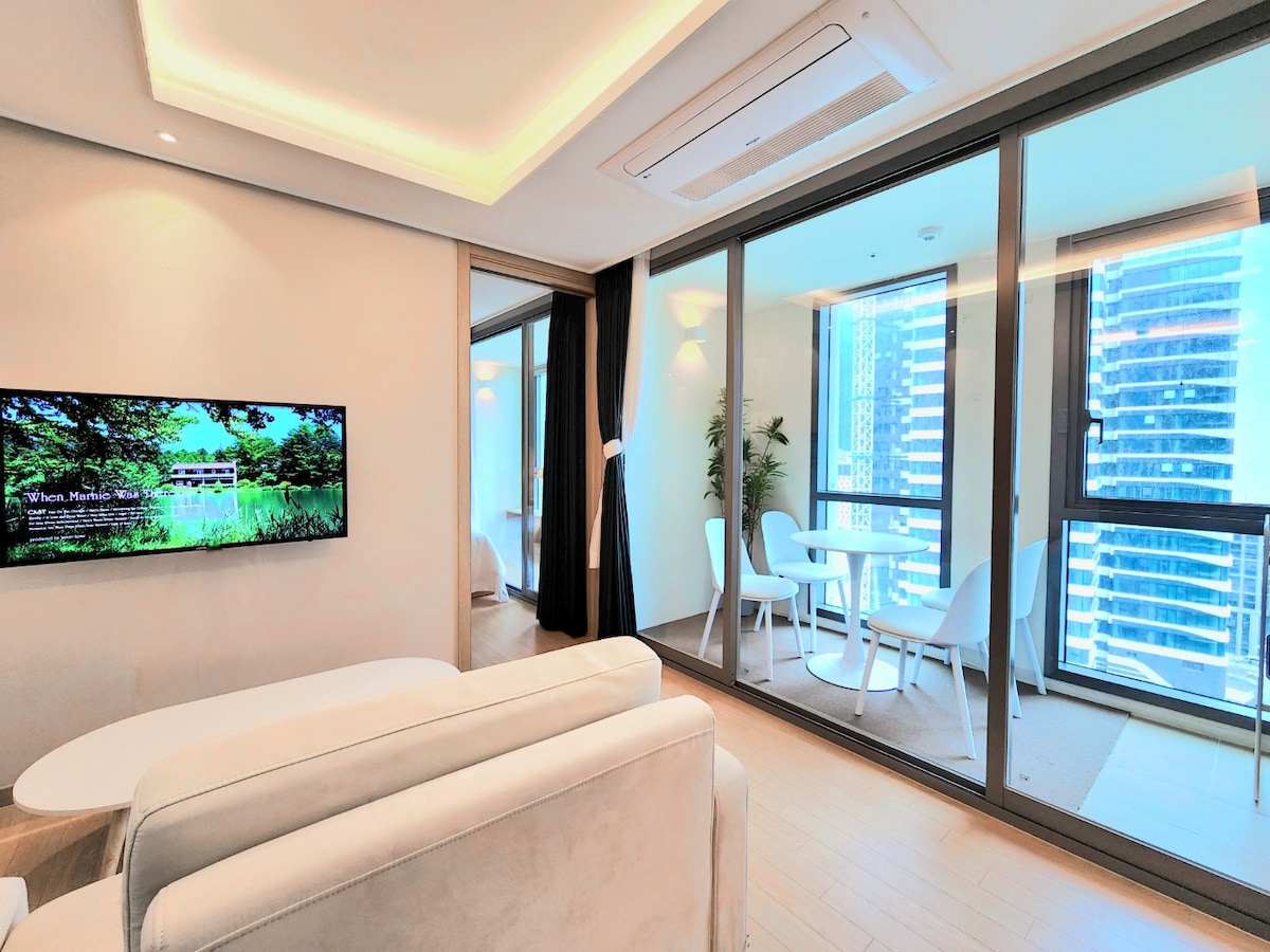 Penarafan purata 4.94 daripada 5, 31 ulasan(1/84) 1 minit dari Haeundae/bersebelahan dengan L City/penginapan yang selesa/opsyen penuh/Netflix/parkir percuma/boleh menyimpan barang/boleh menginap untuk tempoh yang lama
