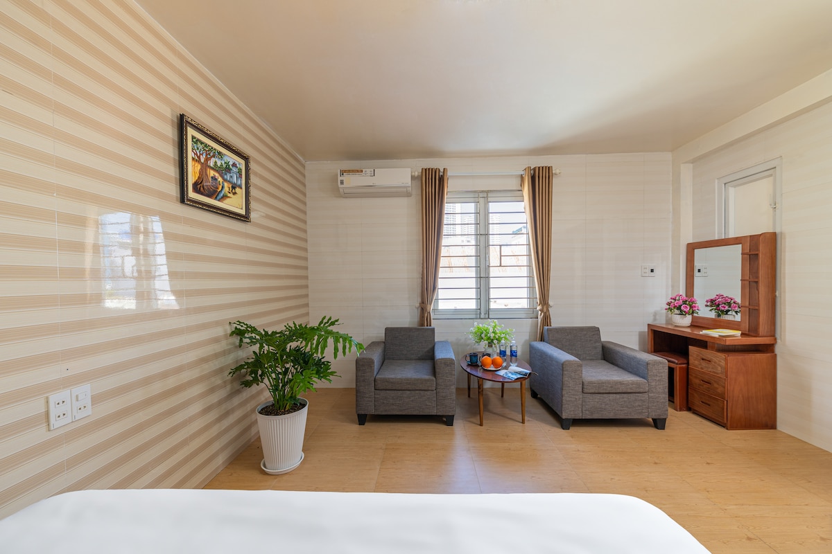 Apartmen persendirian bilik tidur triple, menampung hingga 3 tetamu Tetamu boleh mengakses dengan mudah: # Rong (Dragon) Bridge & Muzium Cham Sculpture: 500m berjalan kaki # Pasar Han: 3 minit memandu # My Khe Beach: 5 minit memandu # Lapangan Terbang Antarabangsa Da Nang: 7 minit memandu - Dikelilingi oleh banyak ruang makan, restoran, pasar super - Mudah untuk mengembara ke Hoi An, Ba Na Hills, Son Tra...
