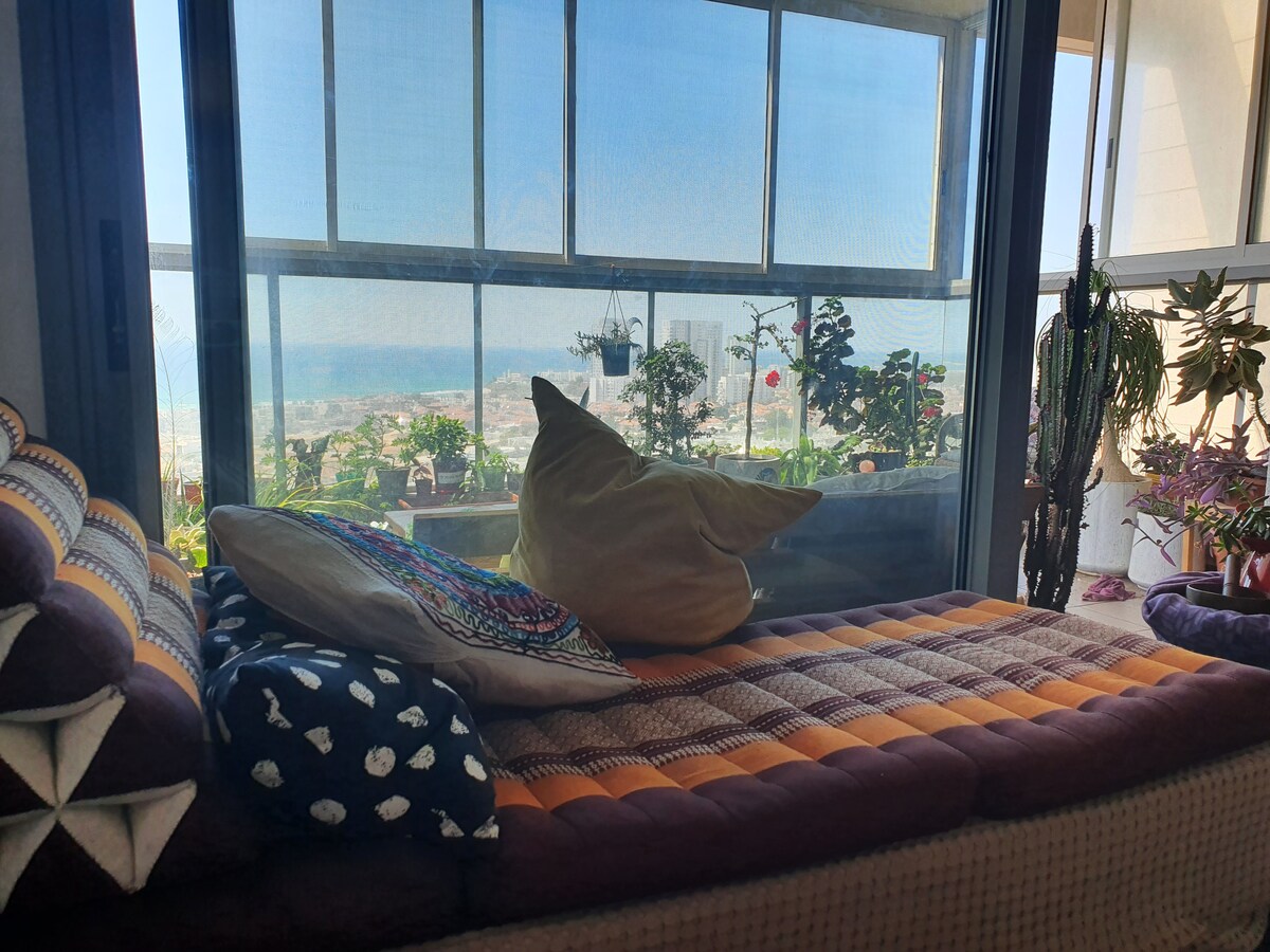 My place is a beachfront studio apartment , sits on top of Haifa's marvelous promenade (a 4.5 mile boardwalk with its fruitshake bars and surf clubs, ice cream cafe, restaurants and bars). There are plenty of outdoor activities (beach volleyball,a skating , surfing, dancing and more). minutes by bus to the Haifa harbour and lower city, iconic Talpiot market and wadi salib flee market. Buses run on fridays and saturdays.