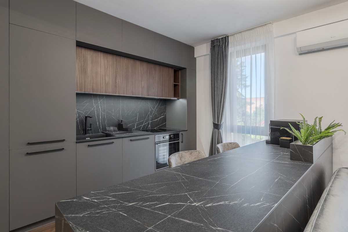 Apartmen moden lengkap, yang dijamin sama seperti dalam gambar. Apartmen ini terletak di tingkat 4, terdapat lif. Saya menyediakan tempat letak kereta secara percuma jika diperlukan. PENTING: Sila nyatakan semasa membuat tempahan kerana penghalang boleh dibuka dengan alat kawalan jauh! Wi-fi, Netflix tersedia di penginapan. Terdapat restoran, kedai runcit, dan farmasi di taman kediaman. Pengering rambut, tuala, gel mandi, cadar, kopi dan teh disediakan di penginapan, jangan bawa barang-barang ini bersama anda!
