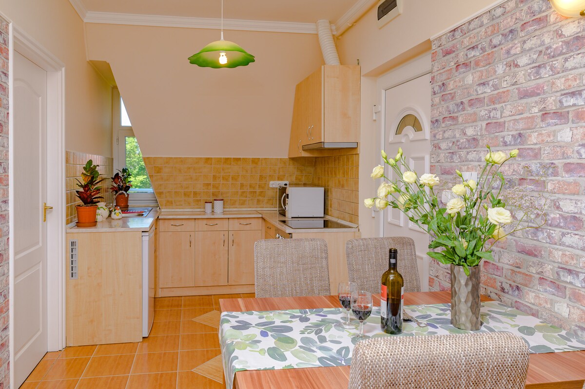 Rumah apartmen kami yang selesa dan dihias dengan baik, hanya 200 meter dari kompleks Hajdúszoboszló Bath. Apartmen satu bilik kami mempunyai dapur dan bilik mandi baru yang serba lengkap dengan pancuran mandi, menyediakan penginapan yang selesa untuk 4 orang. Di halaman kami terdapat teres besar yang tertutup, persekitaran hijau, kemudahan memasak dan tempat letak kereta untuk tetamu kami berehat.