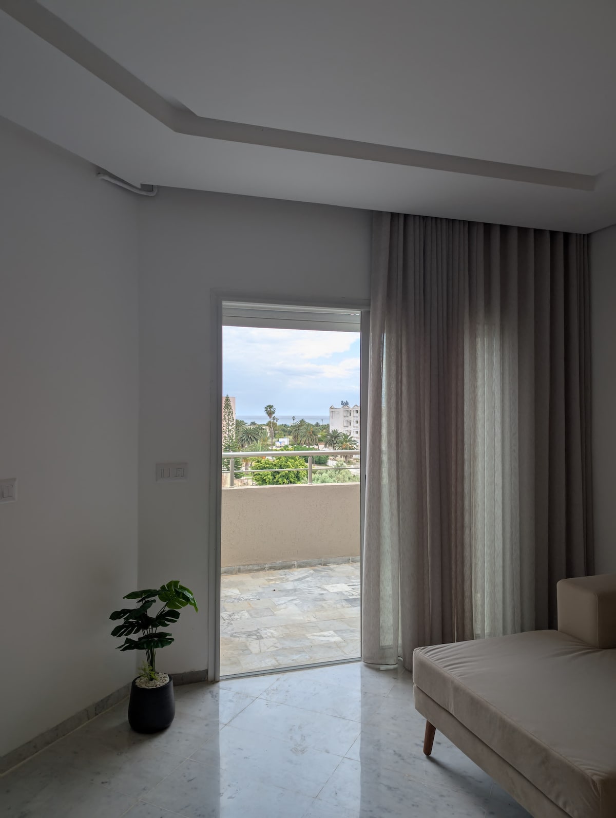 Dar Fatma · BAHARU. Akses kolam renang & pemandangan laut. Sesuai untuk pasangan. 10 minit dari pantai Apartmen 2 bilik baharu, berhampiran dengan pantai, pemandangan laut yang tidak terhalang, tenang dan kolam renang.
