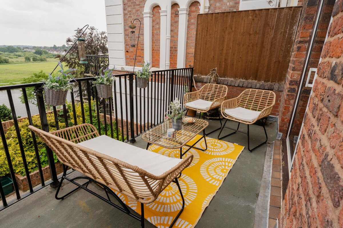 Why Guests Love our home:- • Private balcony overlooking the River Dee • Walk to Chester city centre in minutes • 2 spacious king bedrooms • Smart TV - Netflix & apps Wake up to beautiful views of the River Dee from your private balcony. Enjoy your morning coffee overlooking 'The Meadows'. Perfect for • Weekend breaks in Chester • Couples travelling together • Families visiting the city • Guests attending Chester races or events PARKING: A private car port for one small to medium sized car
