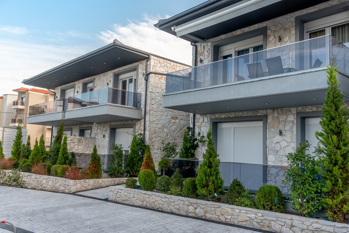 Elegant Retreat in the village of Afitos Nestled in the picturesque village of Afitos, this stylish two-bedroom apartment offers a blend of comfort, elegance, and authentic Greek charm. Designed for those who appreciate tranquility and refined simplicity.