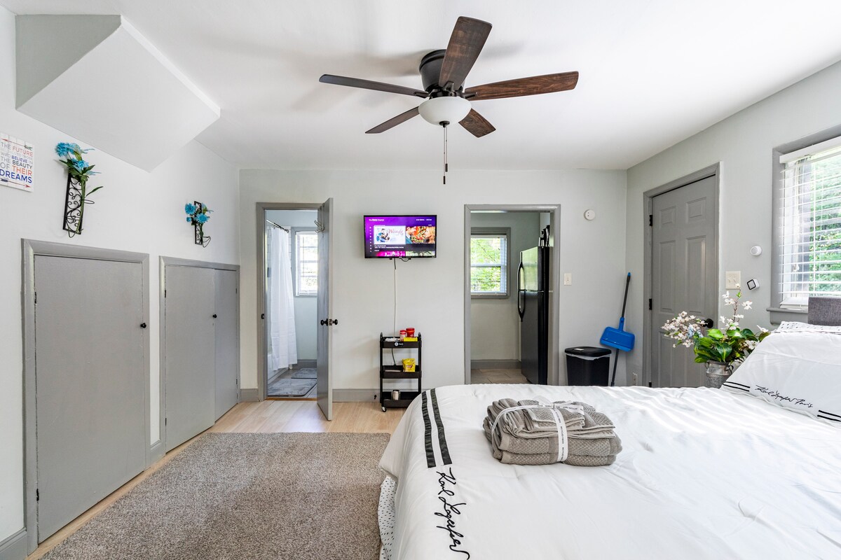 Penginapan bergaya ini sesuai untuk pengembara tunggal atau penginapan berkumpulan. Reka bentuk moden, perabot bergaya dan katil King yang sangat selesa, menjadikannya tempat penginapan yang ideal apabila melawat Atlanta. Kediaman ini mempunyai pintu masuk persendirian dan berasingan daripada rumah utama di atas. Rumah ini termasuk 1 tv skrin rata dengan Wi-Fi percuma, kabel, NetFlix dan perkhidmatan penstriman lain. 15 minit dari Midtown & 12 minit dari Lapangan Terbang Atlanta menjadikan ini lokasi yang sempurna apabila melawat ATL!
