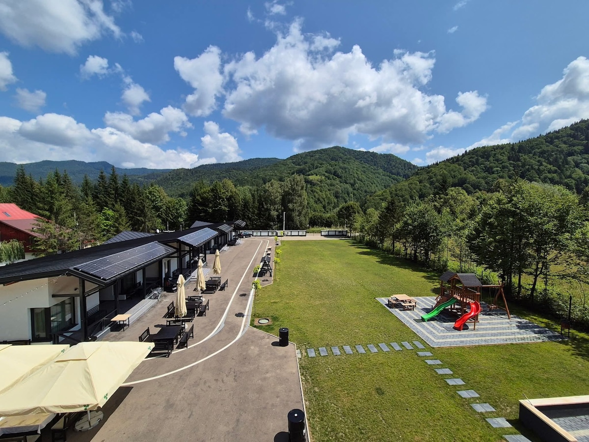 Terletak di tengah-tengah Sovata, penginapan kami yang baru dibuka menawarkan gabungan keanggunan dan keselesaan moden. Dilengkapi dengan kemudahan terbaik yang serupa dengan hotel mewah, bilik kami memastikan penginapan yang riang. Terletak di jalan utama kawasan pelancongan bandar, 300 meter dari Bear Lake, penginapan kami menyediakan akses mudah ke tarikan, tempat makan, dan membeli-belah Sovata, menjadikannya pilihan yang sempurna untuk pengembara percutian dan perniagaan yang mencari pengalaman premium.
