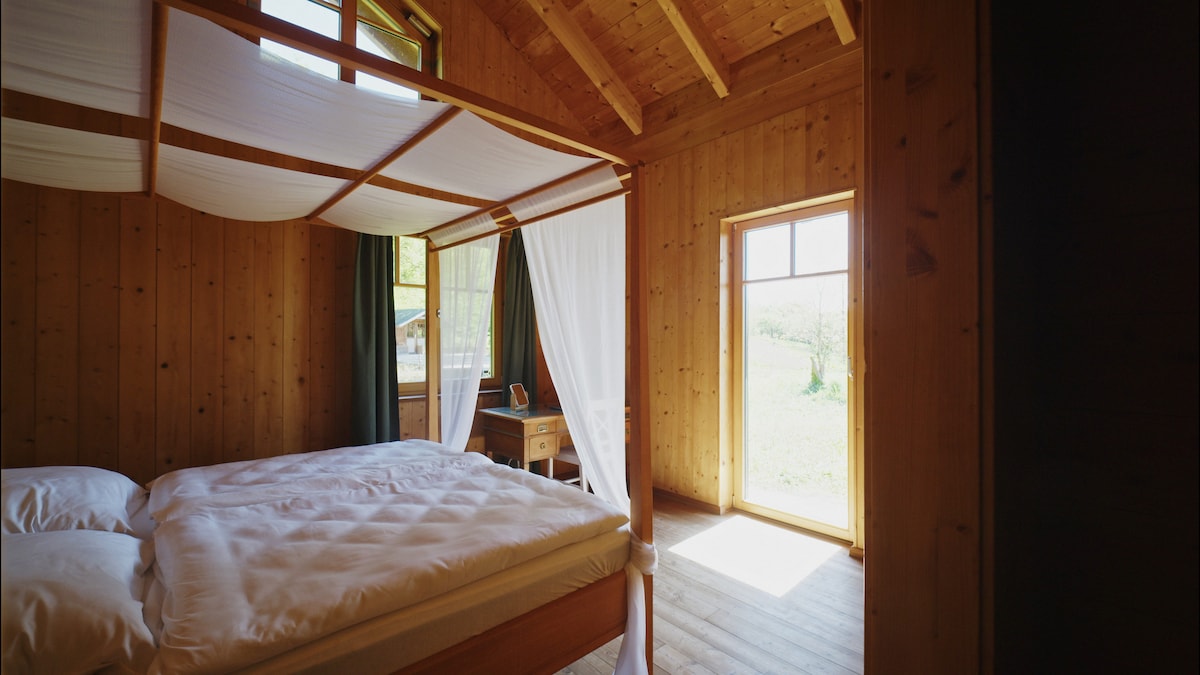 Percutian Romantik Kesihatan Semula Jadi: Suite reka bentuk ZEN&HEAT dengan spa persendirian untuk kebersamaan yang selesa: di tengah-tengah alam semula jadi yang luas, dengan pemandangan panorama, suasana kontemplatif & perincian terutamanya untuk pasangan - Sauna ketuhar kayu dengan kesan rasa yang baik yang tiada tandingan - Bilik mandi kesejahteraan dengan landskap pancuran mandi & tab bulat - boleh dibuka di tempat terbuka - Sarang tidur pemandangan bintang dengan jendela langit - Bilik santai dengan pemain rekod, TV pintar, pendiangan elektrik, penyaman udara - kawasan hiking dan berbasikal yang popular, berhampiran spa &tasik -1 kanak-kanak mungkin