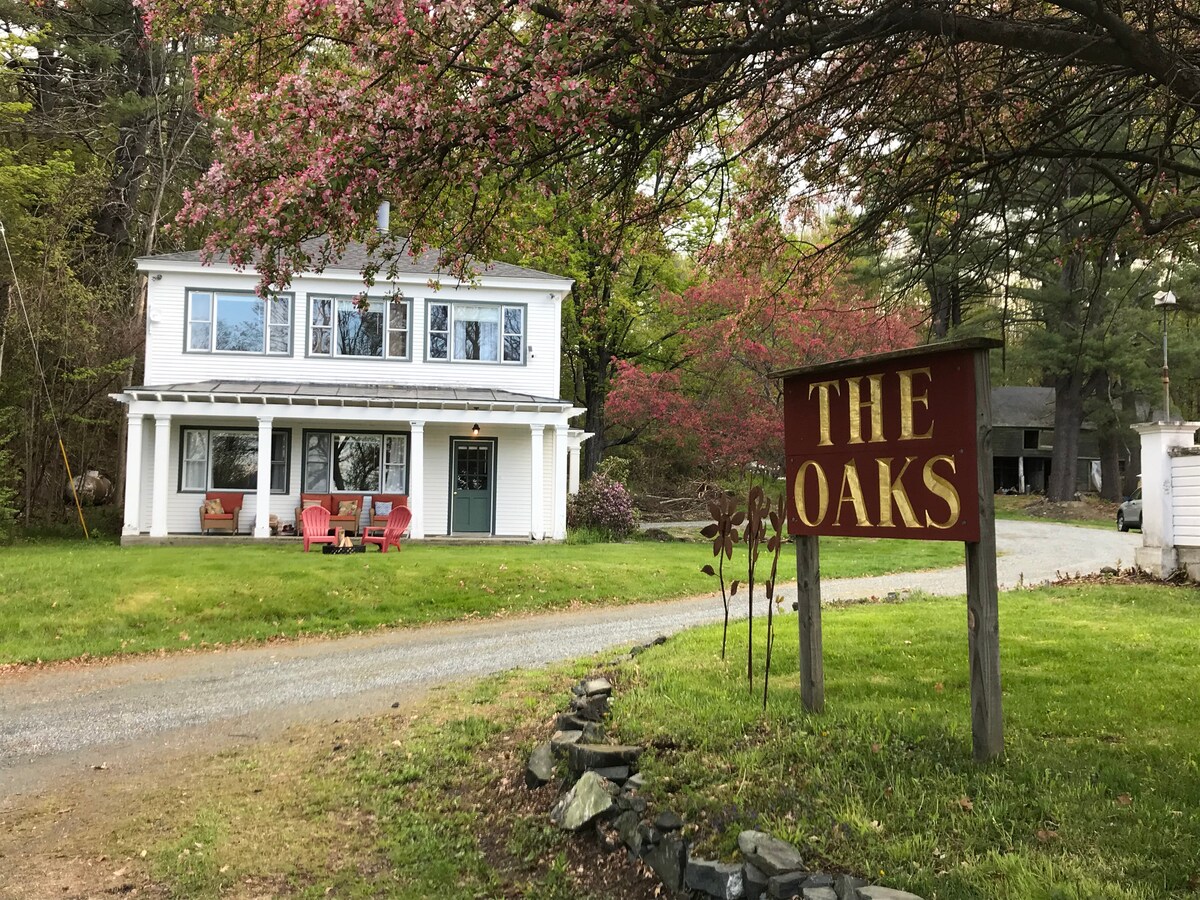 Bersantai di dalam rumah persendirian ini yang terpencil di luar jalan masuk 1,000 kaki di bukit NH yang menghadap Mt. Ascutney dan lembah Sungai Connecticut. Ini ialah estet seluas 45 ekar yang dikenali sebagai "The Oaks" yang sebelum ini dimiliki oleh pelukis Maxfield Parrish. Pokok oak besar dan tepian berbatu berlimpah. Sesuai untuk berkumpul bersama keluarga atau rakan-rakan. Berdekatan dengan Dartmouth College, Woodstock, dan kawasan ski - atau hanya duduk di anjung dan menikmati pemandangan. Perkahwinan dan perjumpaan semula boleh dihoskan (sewaan khemah dan katering oleh orang lain).