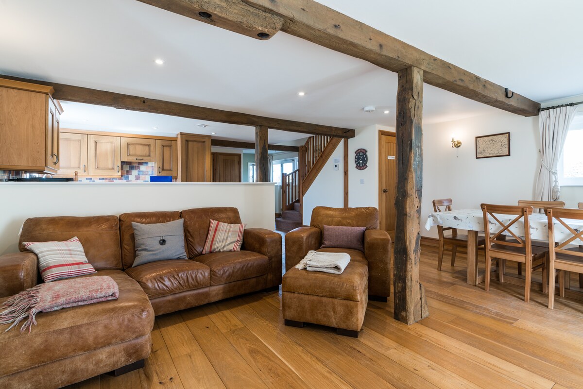 Bergaya dan mesra alam, kotej kami yang terpisah dan serba lengkap berada di lokasi yang sangat luar bandar. Tiada kotej percutian lain di ladang ini. Terletak di High Weald Area of Outstanding Natural Beauty, di ladang biri-biri seluas 23 ekar (yang anda bebas untuk berkeliaran), ini adalah lokasi percutian sebenar. Salah satu tempat yang paling damai dan santai yang anda akan menginap. Dengan pemanas bawah lantai dan dapur pembakaran kayu anda akan selesa apa sahaja cuaca.