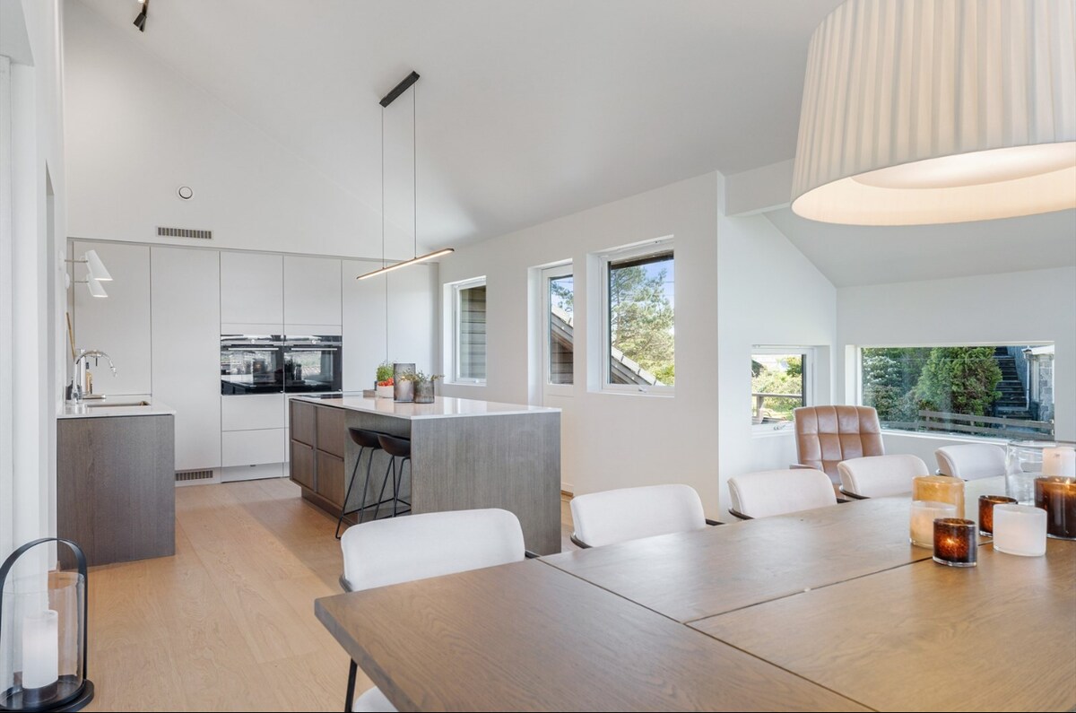 Bawa seluruh keluarga ke rumah keluarga tunggal yang luas di Haugesund. 5 bilik tidur, 3 bilik air dengan ruang tamu yang besar. Dapur dengan dapur, pengewap, pembuat kopi, untuk menamakan beberapa. Tab panas di dalam dan Jacuzzi di luar, serta teres besar menghadap barat yang luas dengan kawasan bebas di hadapan rumah. Ping pong di dalam. Rumah ini terletak di Skredalen yang popular, dengan sambungan bas yang baik ke pusat Haugesund. Sebaik-baiknya mahu tetamu melebihi beberapa hari. Sedikit fleksibiliti pada hari-hari tertentu dan hujung minggu yang ditutup untuk tempahan. Sila hubungi terus.