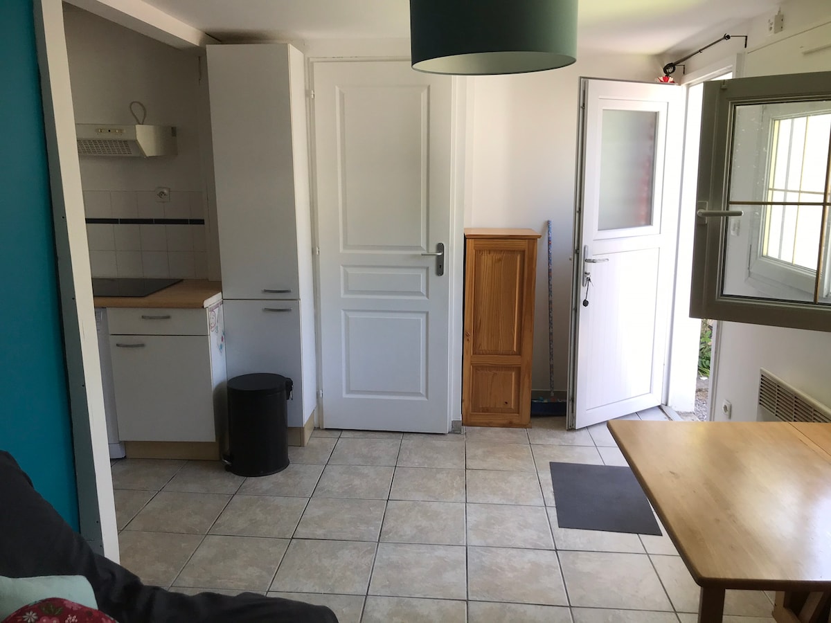 Studio (kira-kira 45 meter persegi) terletak di taman belakang rumah utama. Ia berjarak 12 minit berjalan kaki dari stesen bawah tanah (laluan A4 dan E4), 13 minit dari pusat bandar Paris dan 30 minit dari Euro Disneyland. Kedai dan restoran berada dalam jarak berjalan kaki. Dengan katil sofa tambahan, studio ini boleh memuatkan sehingga empat orang. Dapur kecil membolehkan tetamu menyediakan makanan mereka sendiri. Sarapan termasuk roti segar dan croissant setiap pagi.