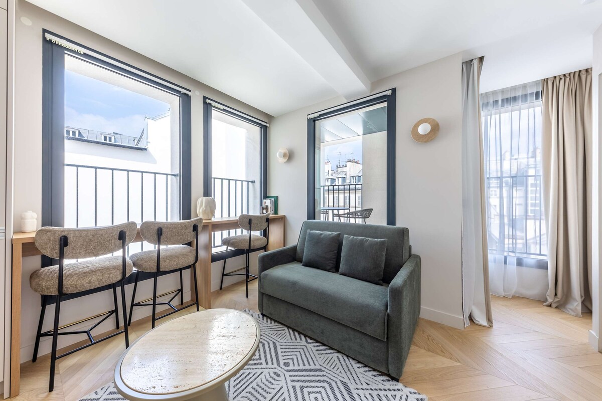 This beautiful apartment is located in the center of Paris, between the Opera district and Madeleine. Whether it's for a business trip or a visit to our beautiful capital, we offer you the chance to live like a Parisian during your stay, while enjoying the services of a 5-star residence. You will need to register in advance via a link you will receive, by uploading your ID card or passport; thank you for your understanding.