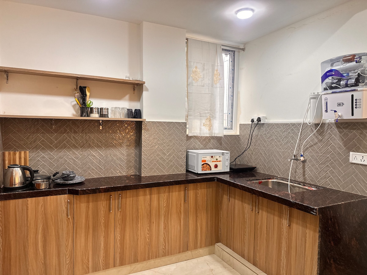 Nikmati penginapan yang selesa dan bergaya di apartmen mewah 1BHK yang moden dan luas ini, yang direka dengan teliti untuk menampung sehingga 4 tetamu. Katil bersaiz king yang selesa, manakala ruang tamu termasuk katil air mani sofa bersaiz king, menjadikannya ideal untuk keluarga, pasangan, atau kumpulan kecil. Apartmen ini menawarkan dua bilik mandi premium, memastikan kemudahan dan privasi. Dapur yang serba lengkap membolehkan anda memasak dengan mudah dan melangkah keluar ke kawasan duduk luar yang damai, sesuai untuk minum teh pagi.