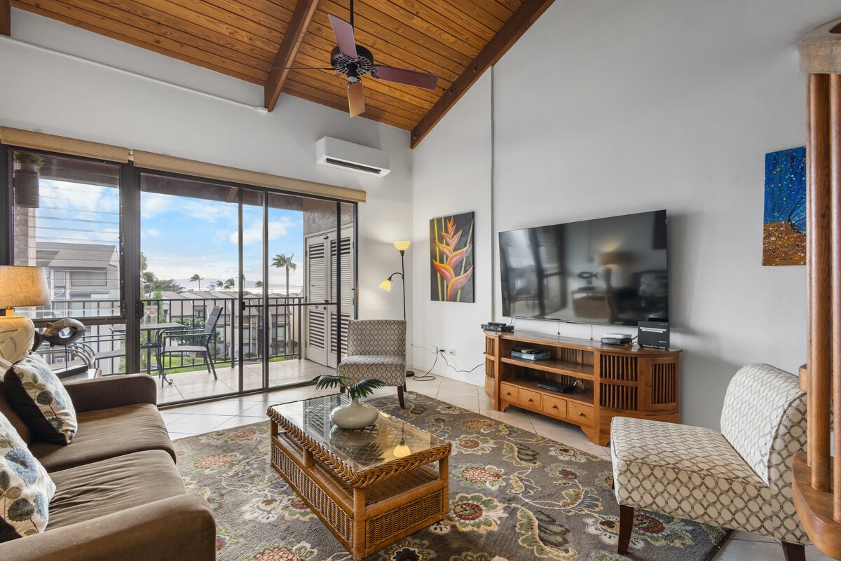 Kondominium lapang ini terletak di pusat bandar Kailua Kona. Minit ke garisan kemasan Ironman, anda tidak boleh menginap di lokasi yang lebih mudah. Luas, dengan siling rasuk terbuka dan di tingkat atas, anda mempunyai privasi serta pemandangan laut dari lanai. Termasuk gerai letak kereta percuma, anda boleh berjalan kaki ke kebanyakan restoran dan kedai dalam pemanduan Alii tanpa perlu membayar yuran letak kereta.
