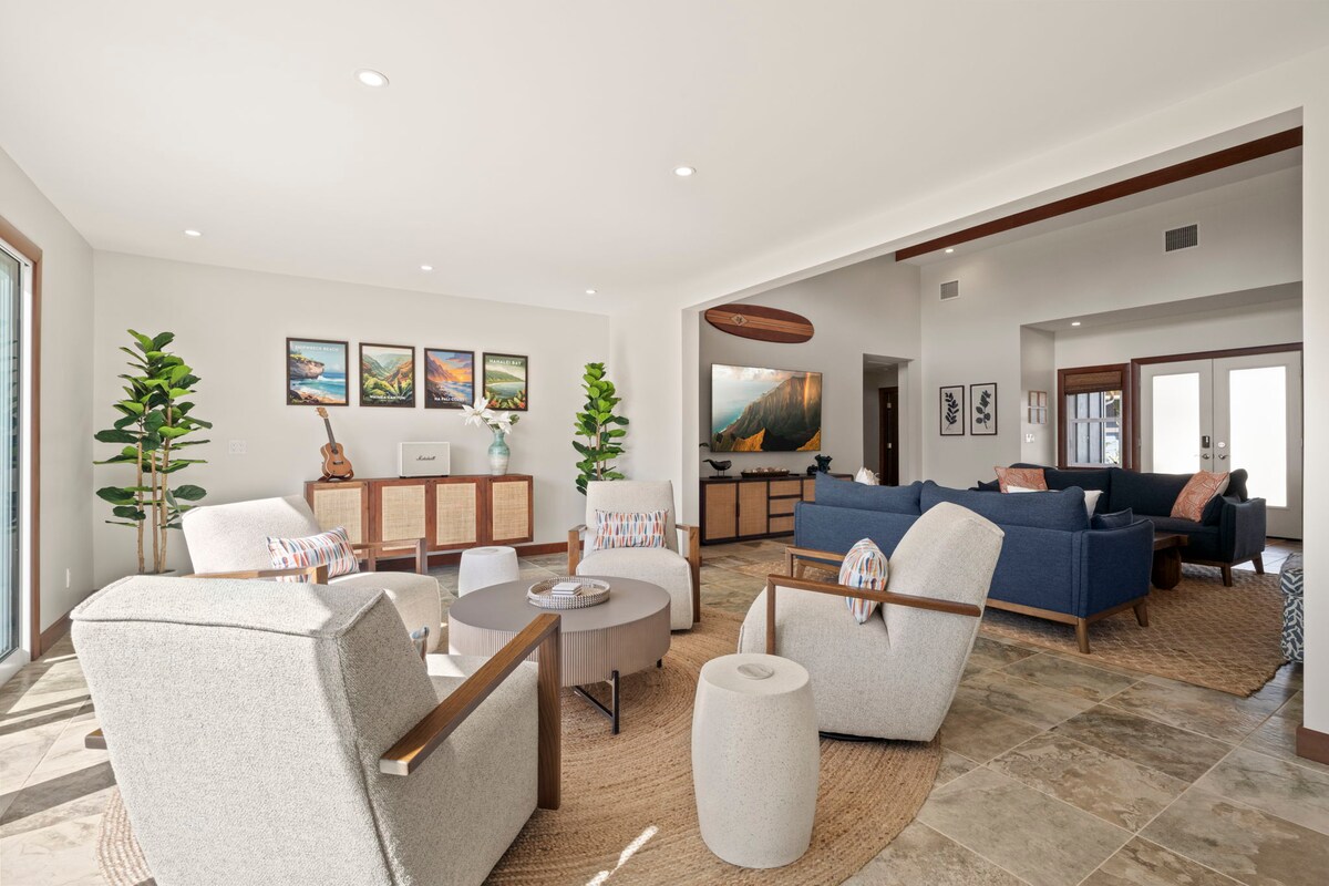 Selamat datang ke Luana House. Bangunan baharu, Boho Modern yang direka oleh arkitek tempatan, rumah luas dengan 4 bilik tidur, 4 bilik mandi, Penghawa Dingin di padang golf. Lanai yang dilindungi termasuk tempat duduk, tempat makan & BBQ. Pemandangan padang golf yang menakjubkan, jarak berjalan kaki ke tempat membeli-belah, kedai runcit & pantai. Sesuai untuk pekerja jarak jauh, kumpulan rakan, & keluarga. Beberapa minit dari Meluncur di Hanalei Bay, Queens Bath, & Padang Golf Makai. Ditampilkan dalam Dwellescapes.