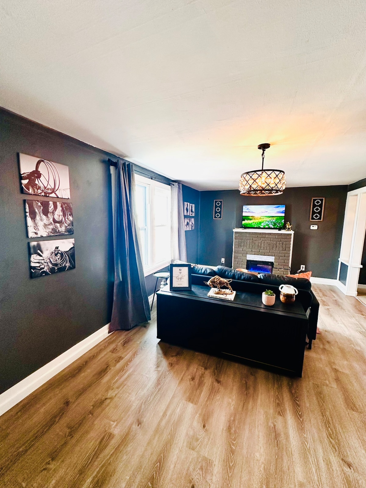 Midnight Cowboy Condo is a cozy 1-bedroom downtown retreat near Historic Main Street and just minutes off I-70 — perfect for travelers seeking comfort and value. This pet-friendly upper-level condo features western décor, queen bedroom, Smart TVs, WiFi, electric fireplace, full kitchen, coffee bar, and dining area. Enjoy a shared backyard with grill, firepit, and community laundry. Ideal for quick stays, road trips, and weekend getaways.