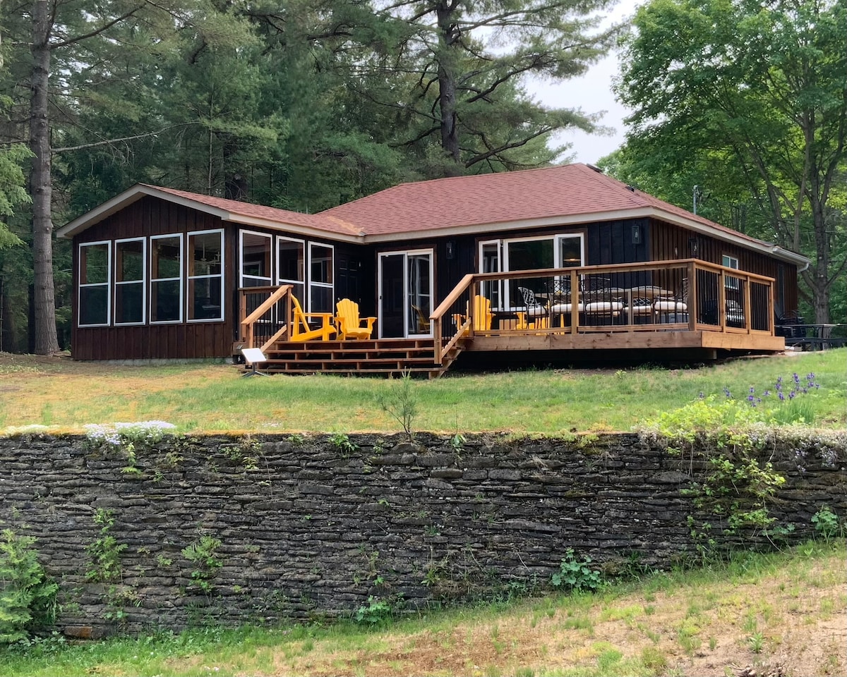 Selamat datang ke Somerville Lodge, kotej yang direka dengan teliti dengan semua kemudahan moden yang anda perlukan untuk memanfaatkan sepenuhnya percutian santai anda Di Kawartha Lakes, di bawah 2.5 jam dari Toronto, kotej kami terletak di atas tanah seluas satu ekar di sepanjang 350 kaki Sungai Burnt, sesuai untuk berenang, berkayak dan mendayung papan. Dek besar mempunyai ruang untuk bersantai, atau berehat di tab mandi air panas. Ruang tamu, ruang makan dan dapur yang besar memberikan banyak ruang untuk mana-mana keluarga atau kumpulan.