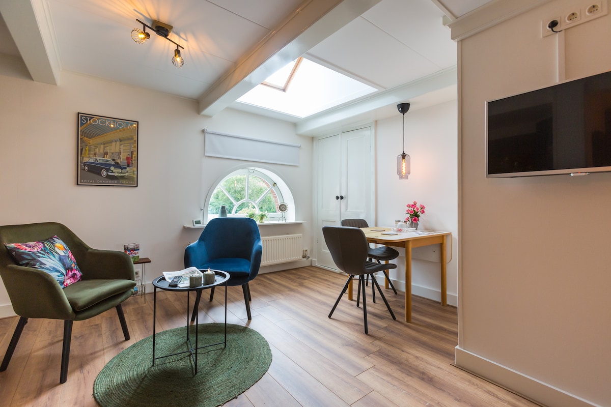Selamat datang! Studio baru yang selesa ini hanya 10 minit berjalan kaki dari stesen, dan 3 minit dari garaj letak kereta. Hoeksterend (Maks.€ 7 p/d & keluar 24/7). Bandar lama Ibu Kota Budaya Eropah 2018 yang meriah tidak jauh dari sini. Studio ini berperabot bergaya & serba lengkap: bilik mandi peribadi penuh termasuk pancuran hujan, TV 43 inci (dengan chromecast), dapur kecil dengan ketuhar gelombang mikro, peti sejuk & mesin kopi, meja makan, meja & katil dua tingkat.