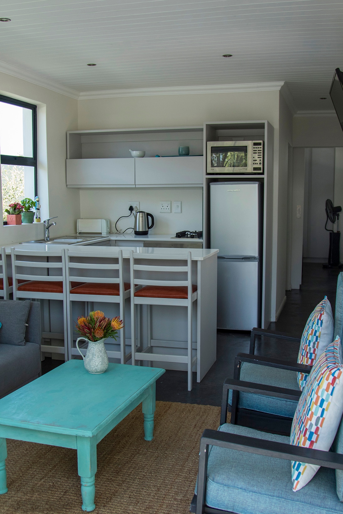 Kotej pelan terbuka yang menawan, terletak berhampiran laluan tebing dan melihat ikan paus di Hermanus. Kotej berdiri bebas ini terletak di belakang kediaman persendirian kekal dengan pintu masuknya sendiri. Terdapat ruang tamu yang selesa dan tempat duduk yang selesa. Ia adalah tempat yang sesuai untuk berehat selepas seharian meneroka. Bersebelahan dengan ruang tamu, anda akan menemui dapur yang serba lengkap. Tidak perlu bimbang tentang beban.