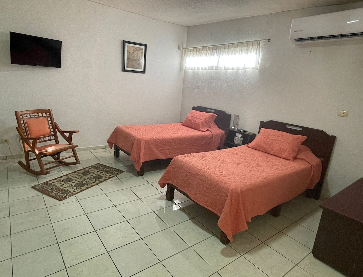 Nikmati pesona penginapan yang selesa ini, yang terletak di subbahagian "Costa de Oro". 5 blok jauhnya anda akan mempunyai pusat membeli-belah, pantai, restoran, kelab, dan cara pengangkutan Suite ini peribadi dengan akses jalan terus Ia mempunyai 2 katil bujang, bilik mandi, meja, kerusi, TV 32"dengan Roku, penyaman udara, lembangan air, ketuhar gelombang mikro, bar mini, pembuat kopi, gril, air berkarpet dengan dispenser cadar, tuala, syampu, gel badan