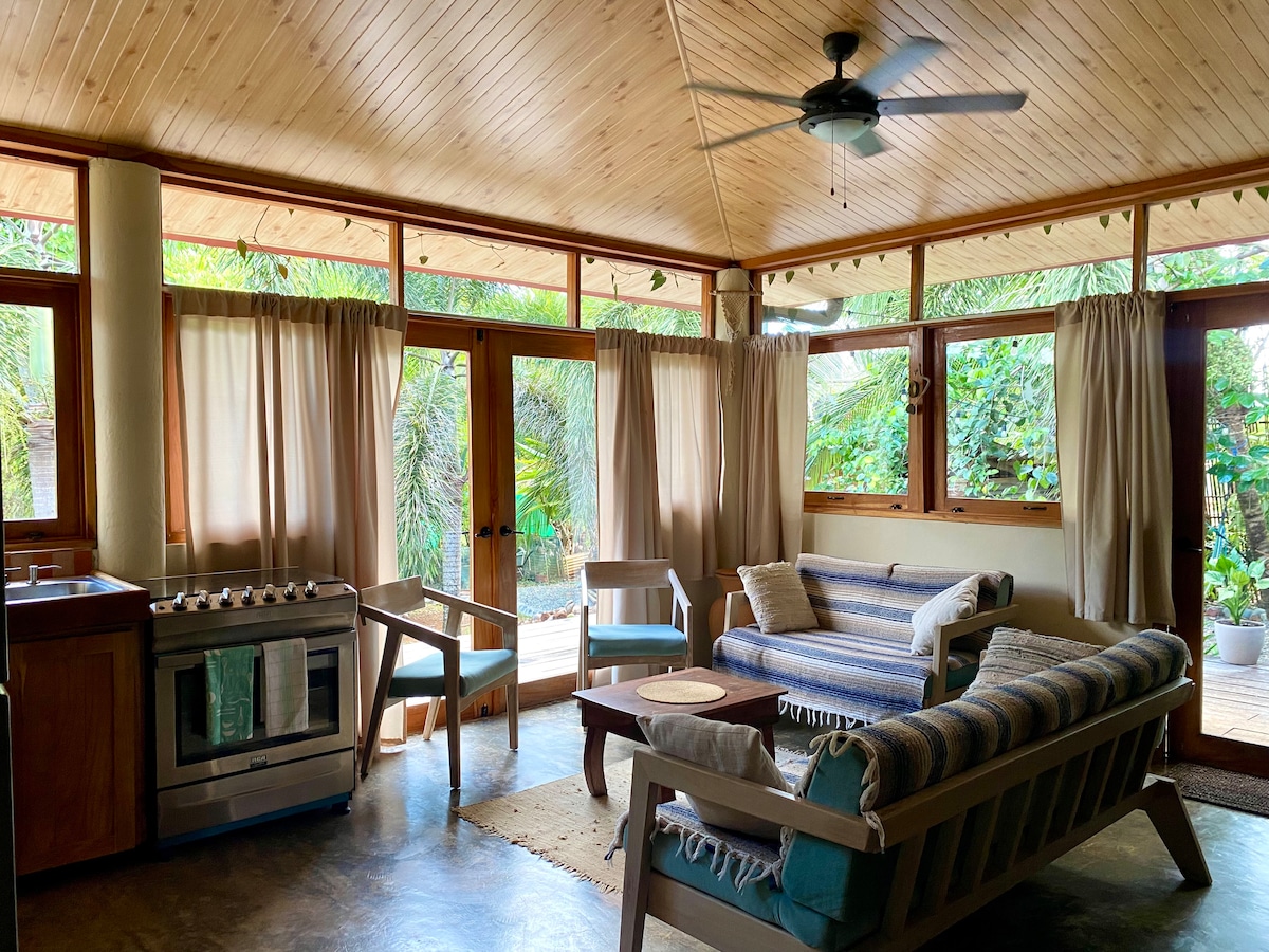 Rumah kecil dengan jiwa — tempat yang sesuai untuk beristirehat dan berhubung semula. Direka bentuk dengan teliti 15 m² dengan pemandangan Lautan Pasifik yang menakjubkan, katil yang selesa, bilik mandi persendirian, dapur kecil, A/C, kipas, teres, dan Wi-Fi supaya anda mempunyai semua yang anda perlukan. Sama ada anda berada di sini untuk berehat, bekerja dari jauh, atau meneroka sungai, air terjun dan pantai berhampiran — ini tempat anda. Meluncur, matahari terbenam yang tidak dapat dilupakan, ketenangan sepenuhnya... dan ya, haiwan peliharaan anda juga dialu-alukan! 🐾