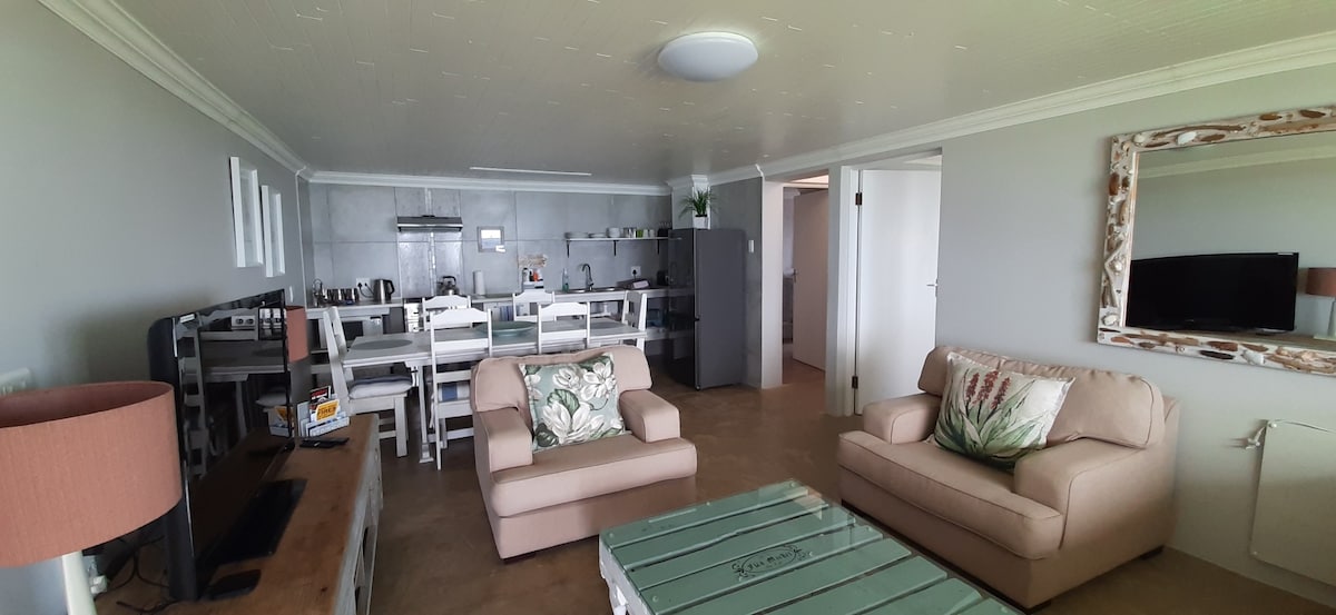 NO LOADSHEDDING. Seaview. 400m dari pantai. Pampoentjie ialah unit 2 bilik tidur persendirian yang cerah dan luas. Tiada perkongsian dengan tetamu lain. Pemandangan laut dari balkoni dengan braai weber dan Meja dan kerusi. Pendiangan dalaman. DSTV PREMIUM+ WIFI. Ruang makan dengan meja dan kerusi. Mesin pencuci pinggan dan mesin basuh di Dobi. Pancuran mandi di bilik mandi. Tandas tambahan. Tidur 4/5. Tangga. Selimut elektrik, selimut dan linen di atas katil. Dilengkapi dengan baik: pinggan mangkuk, gelas dan kutleri. Selfcatering @ risiko sendiri. Pintu masuk persendirian.