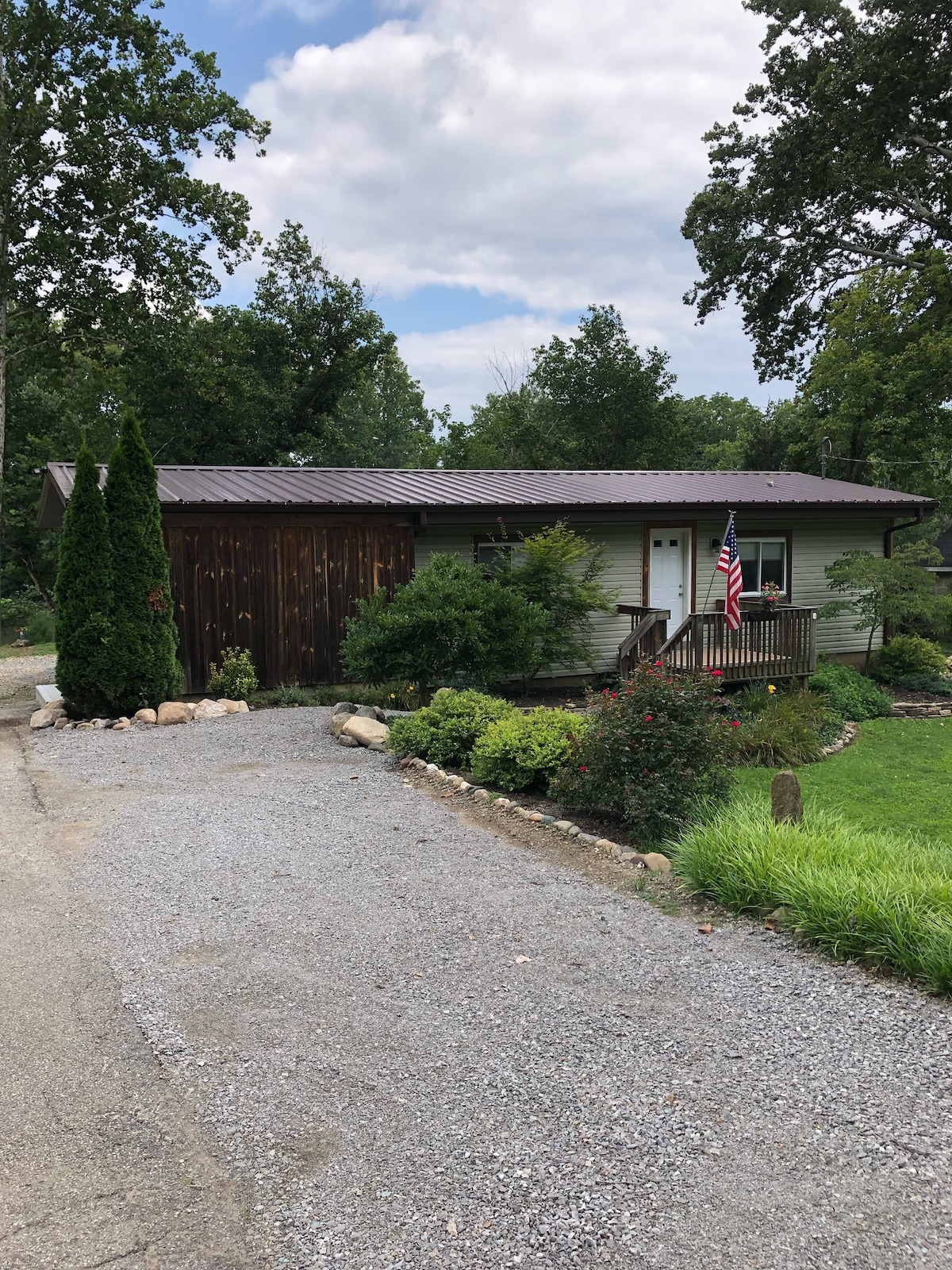 Kira-kira 1k kaki persegi baru dan apartmen bawah tanah berperabot cantik dengan pintu masuk luaran persendirian berlampu di taman seluas lima ekar seperti suasana. Dapur penuh dan dobi di unit. Terang dengan panel kaca penuh 6 kaki lebar pintu Perancis dan tingkap blok kaca bilik mandi memberikan banyak cahaya matahari. Dilarang merokok di dalam atau di luar. Dilarang berparti. Tiga gembala Jerman yang sangat mesra dengan alasan yang suka bermain. Kira-kira 2 minit dari Creation Museum. 42 ke Ark Encounter, 20 ke stadium Reds, Bengals dan FC CINCY.