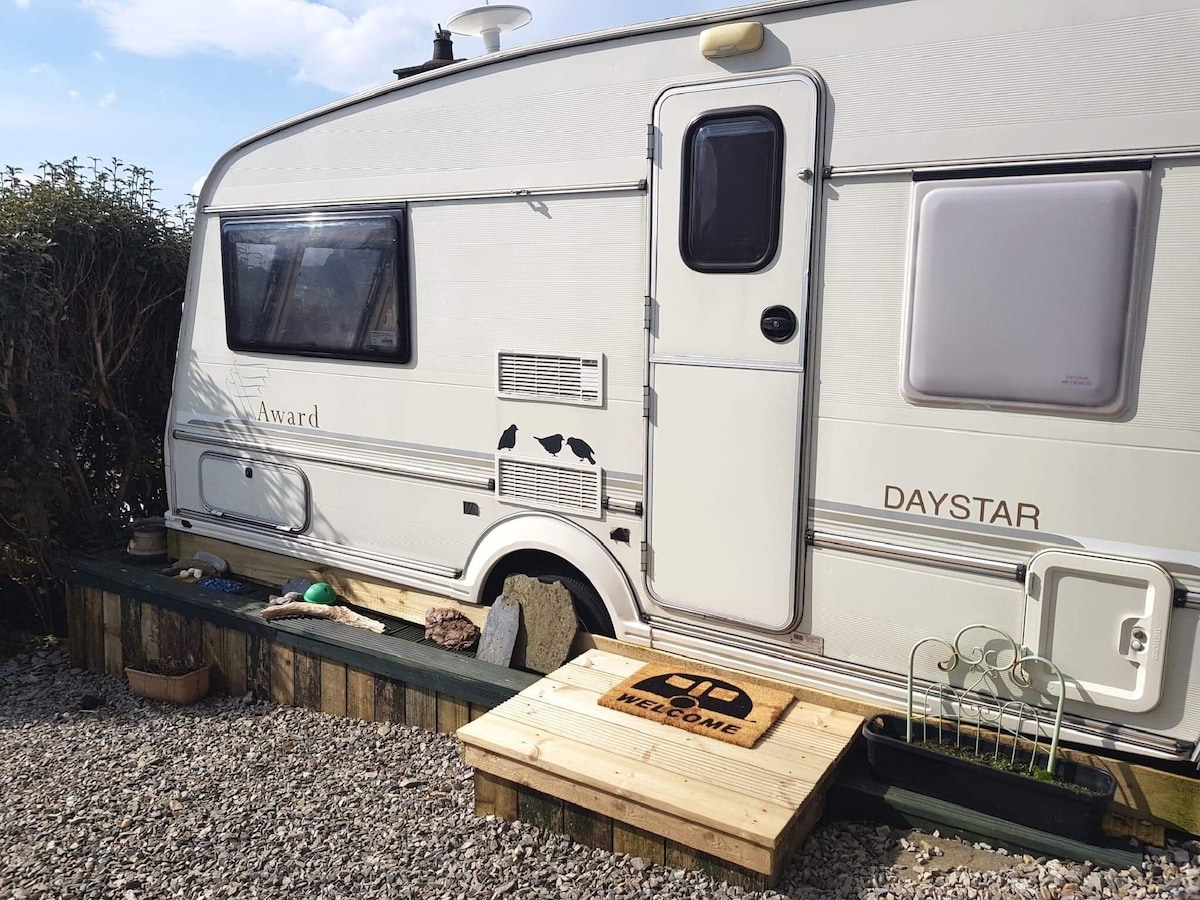 Karavan yang bersih, cerah, serba lengkap di bahagian Skye yang cantik dan terpencil. Karavan ini terletak ideal untuk menjauhkan diri daripada orang ramai dan menikmati percutian yang selesa dan terpencil. Dengan jalan masuk sendiri, tempat letak kereta, kawasan tertutup dan penginapan yang serba lengkap, anda tidak perlu bersentuhan dengan sesiapa semasa daftar masuk atau penginapan anda.