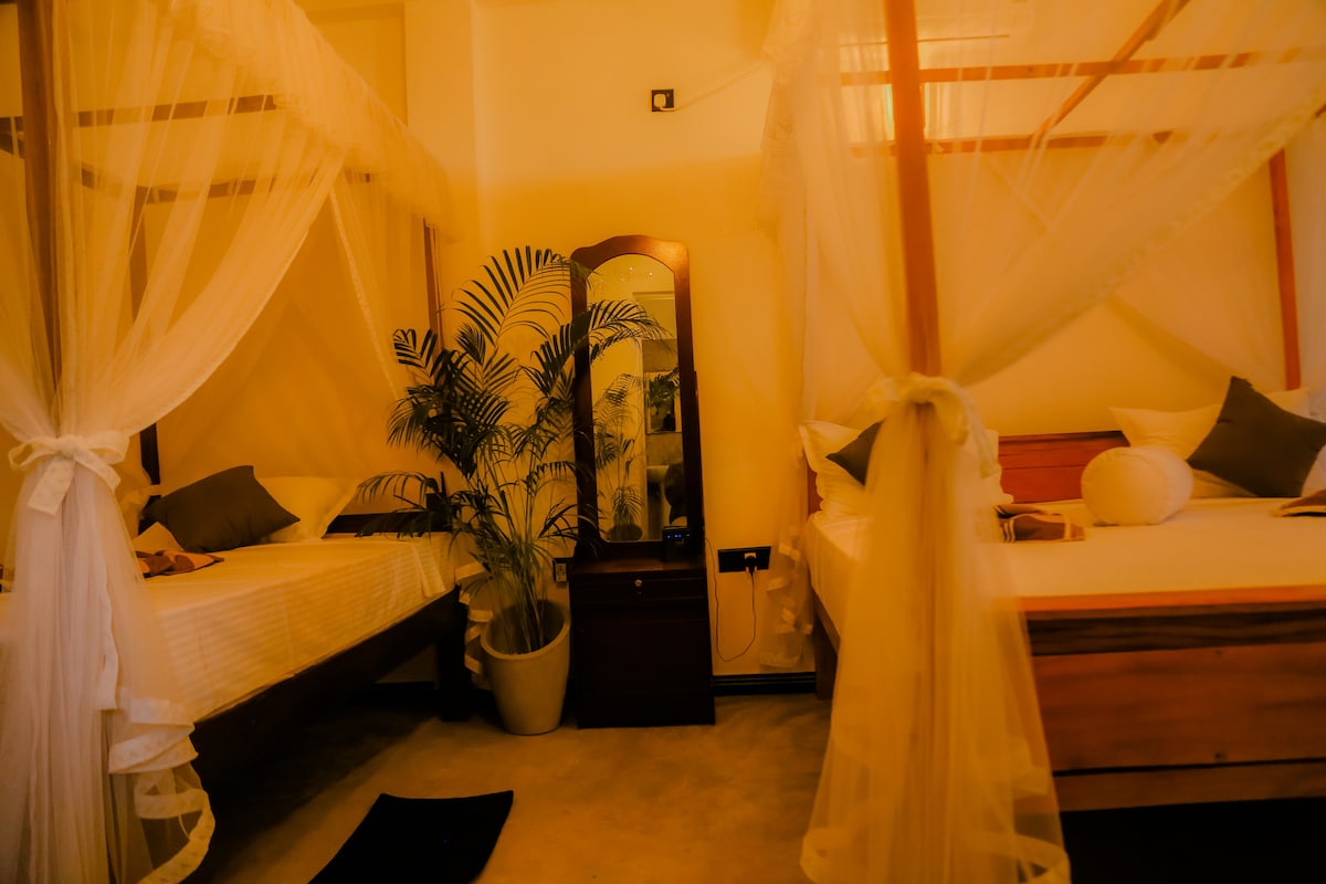 Dua vila percutian peribadi dan damai berperabot lengkap yang cantik, masing-masing mempunyai 3 bilik tidur besar berhawa dingin, dapur serba lengkap, kolam renang peribadi dengan 2 kolam renang kanak-kanak, dan patio dengan pemandangan kolam renang berhampiran dengan pusat pantai Hikkaduwa. Vila berkembar ini terletak di kawasan yang sunyi dengan kurang bunyi bising dan persekitaran yang indah. Ia selamat 24 jam melalui CCTV, meja depan dan Pengemasan harian. Seluruh rumah sesuai untuk sekumpulan pelancong dan keluarga.