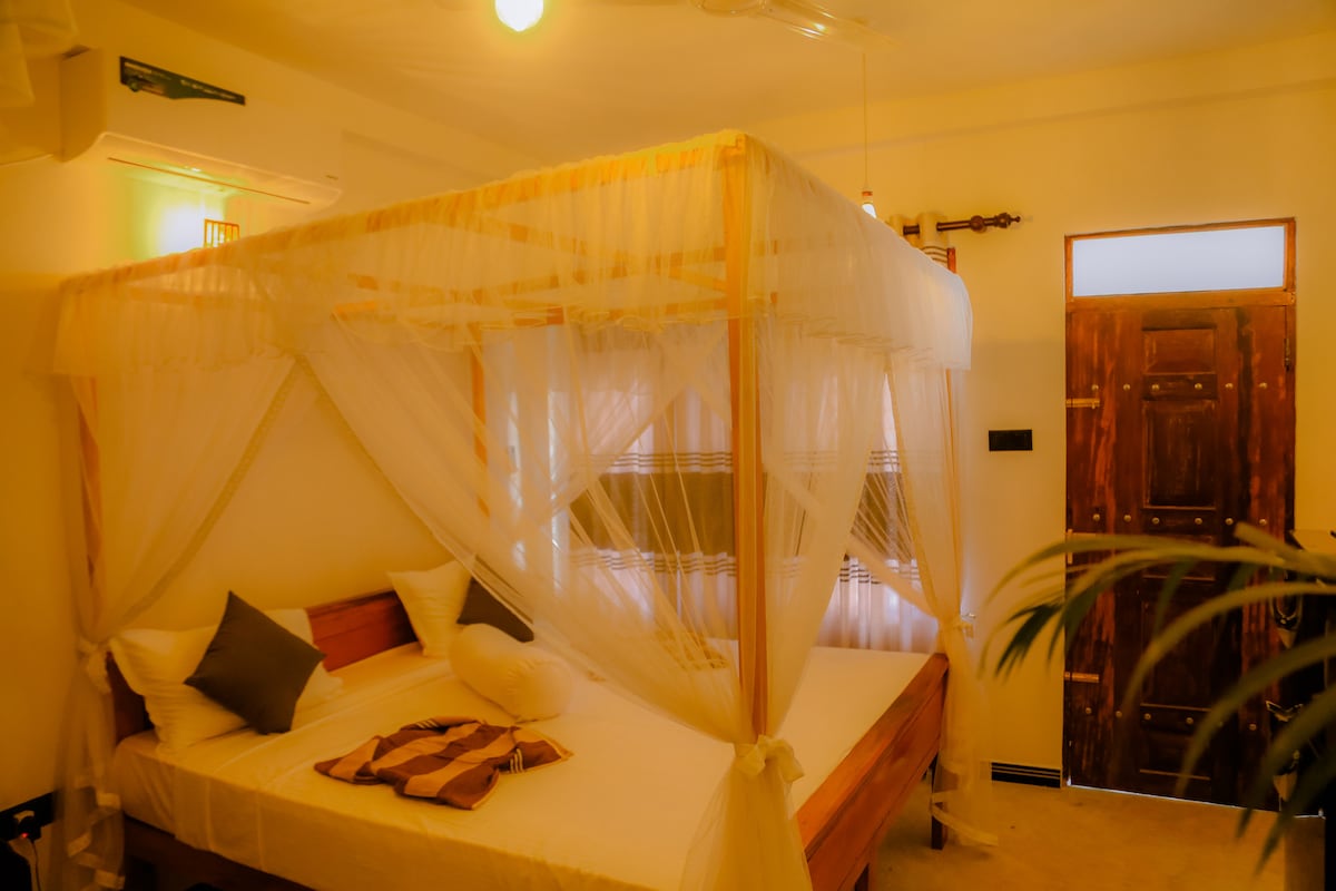 Anda akan tinggal di banglo berasingan dengan katil raja dan katil saiz Queen sendiri, bilik mandi dan dapur besar. Anda akan mempunyai pilihan untuk menikmati sarapan Sri Lanka buatan sendiri percuma kami (dan makanan pilihan lain) di hadapan rumah di sebelah taman hutan. Bersantai di ruang yang tenang dan bergaya ini.