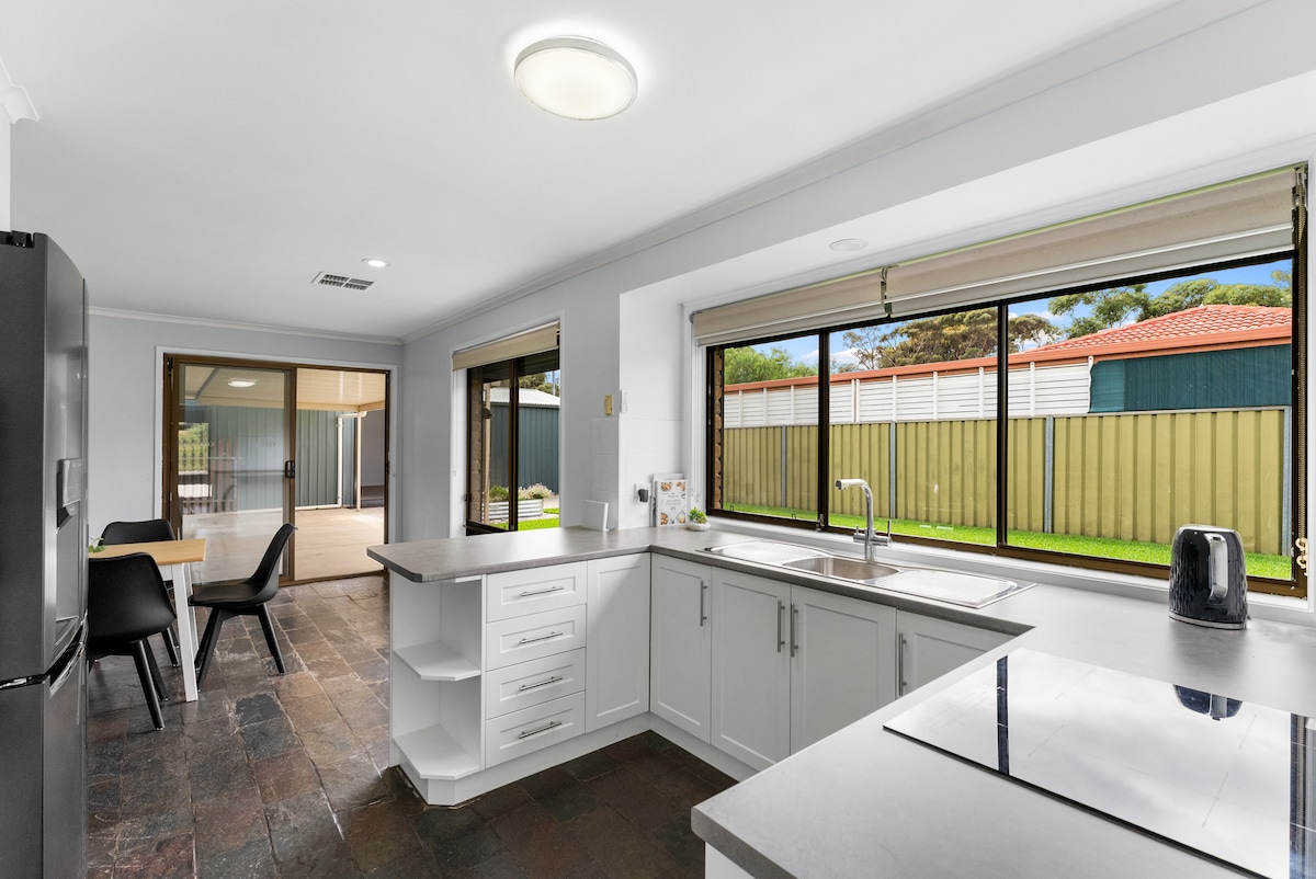 Clean well presented fully equipped home within easy access to shopping centre and public transport. It is a lovely quiet area where you can explore the many walking tracks or stroll down to the nearby lake, a great location for a day trip to explore the Barossa Valley Wine region. The City is a short 25min bus ride once there you can jump on and off the free tram service exploring the many attractions in our beautiful city of Adelaide or catch a tram down to beautiful Glenelg Beach