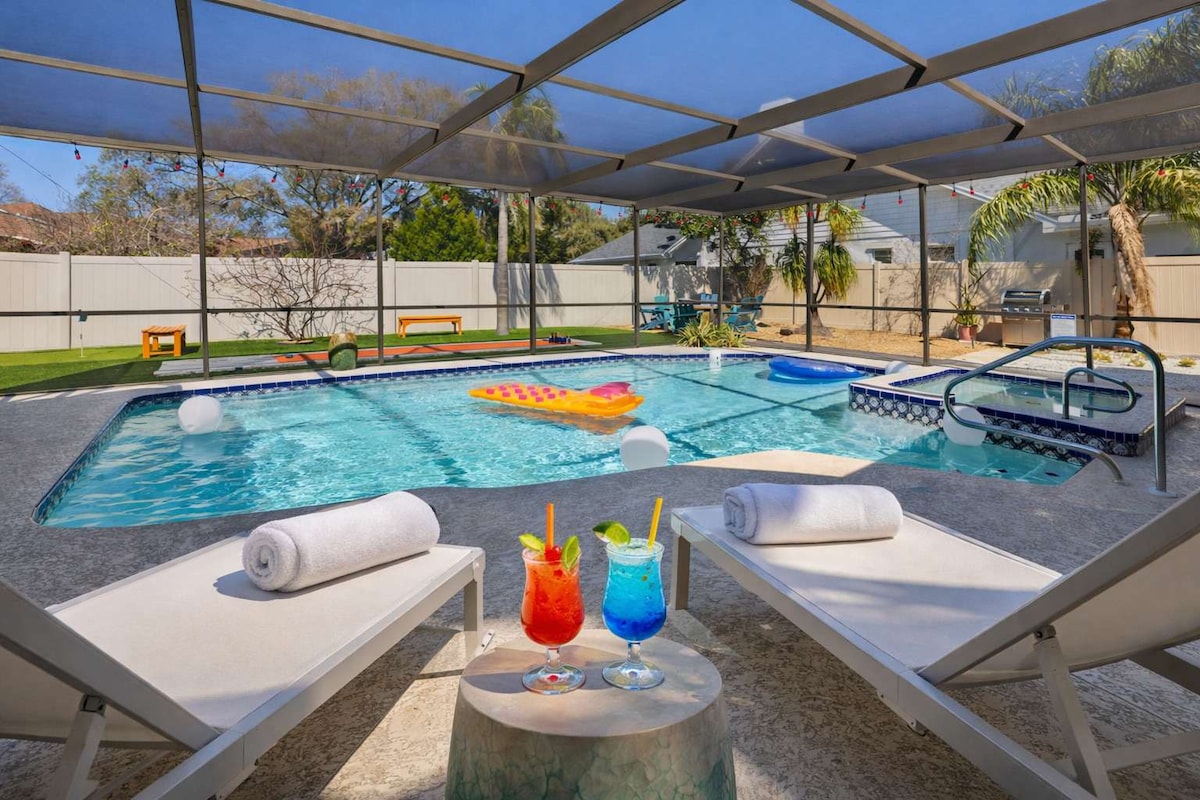 Ditampilkan di HGTV! Kolam air panas persendirian, barbeku elegan, basikal penjelajah pantai, dan katil SleepNumber...semuanya dalam masa 5 minit dari Indian Rocks Beach. Bersantai di kolam renang anda sendiri yang hangat dan berkilauan, terletak dalam suasana halaman belakang tropika yang lengkap dengan pagar privasi penuh, barbeku tepi kolam renang. Atau berehat daripada matahari dan nikmati pemandangan dari lanai yang berkelap.