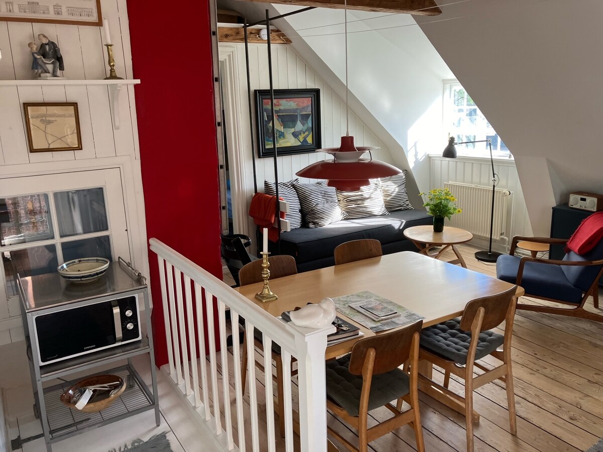 Minimum 2 malam - minimum 2 malam. Lokasi super tidak jauh dari pusat bandar, dengan pilihan tempat makan, kafe dan muzium. Tempat letak kereta betul-betul di pintu serta pasar raya, kedai roti dan stesen tangki. Terdapat teres peribadi dengan perabot taman - ditutup dan untuk matahari, barbeku dan lubang api. Semuanya baru diubahsuai. Nota: Pakej linen DKK 50,/seorang (terdiri daripada cadar, 4 tuala, tikar mandi, tuala teh, dll.) wajib. Rumah ini tidak sesuai untuk kanak-kanak atau orang kurang upaya berjalan kaki.