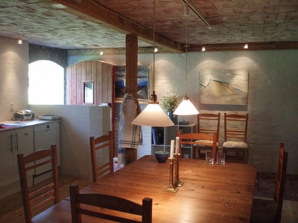 Rumah tetamu dibina ke dalam bangsal, sebagai rumah kecil dengan 2 tingkat. Pemisahan merah lantai bata merah yang unik telah dipelihara, dan anda masih boleh melihat di mana gerai anak lembu telah berada. Ia menjadikan dapur benar-benar selesa. Persekitarannya adalah untuk barbeku dengan kerusi berjemur sendiri. Dengan jelas dinyatakan bahawa penggunaan elektrik dan air mesti diselesaikan mengikut meter